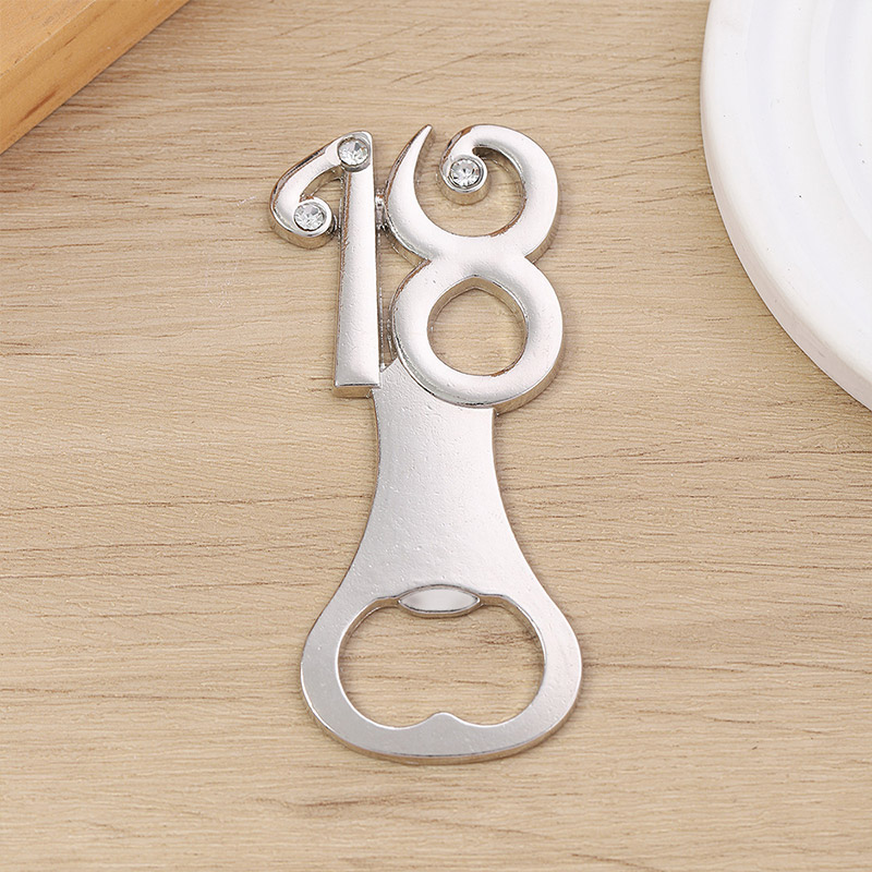 This 44g (8.8cm) silver opener features a sparkling "18" design with embedded crystals. It easily removes bottle caps, making it a perfect commemorative gift for 18th birthdays, milestone celebrations, or adding a festive touch to adult gatherings.