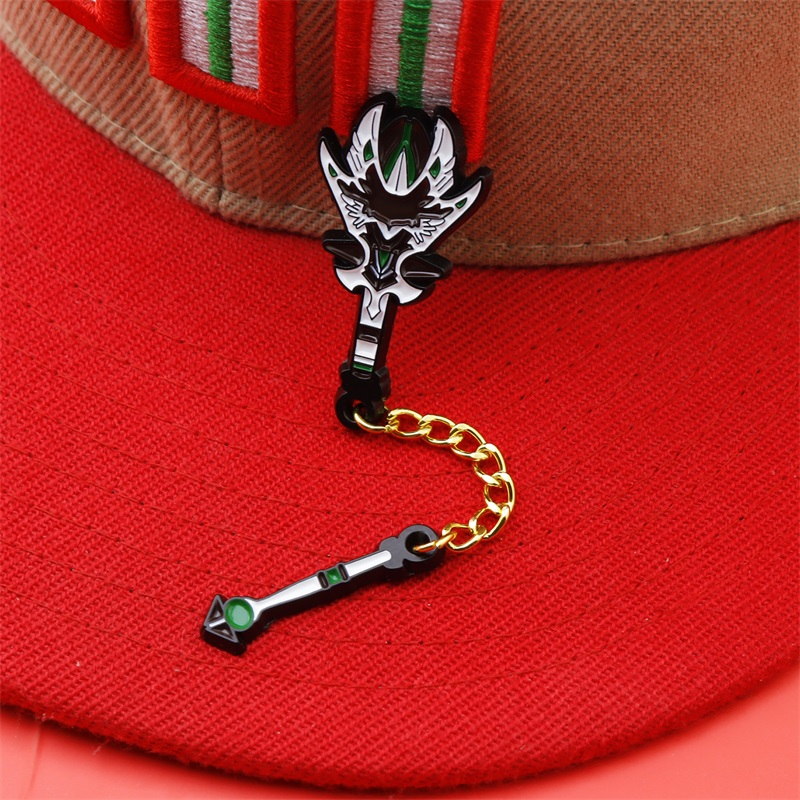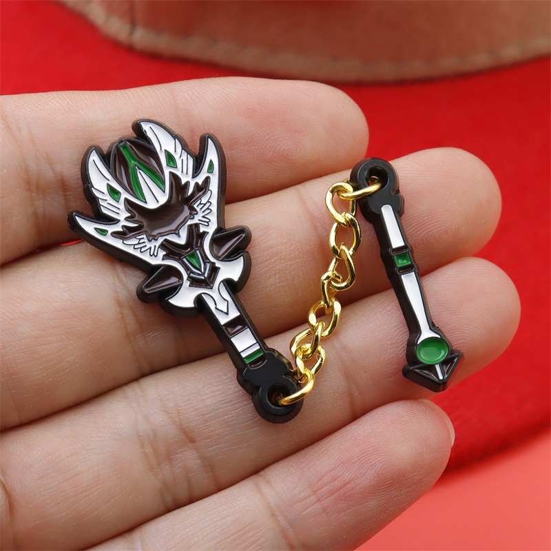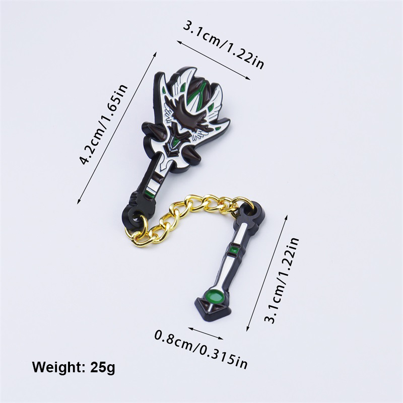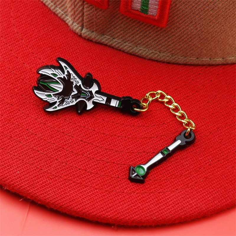 Unique Cap/Bag DecorBoasting a detailed anime weapon shape (black/white/green enamel) paired with a shiny gold chain, this accessory adds themed flair to caps/bags—ideal for anime fans seeking distinctive, game-inspired decor.