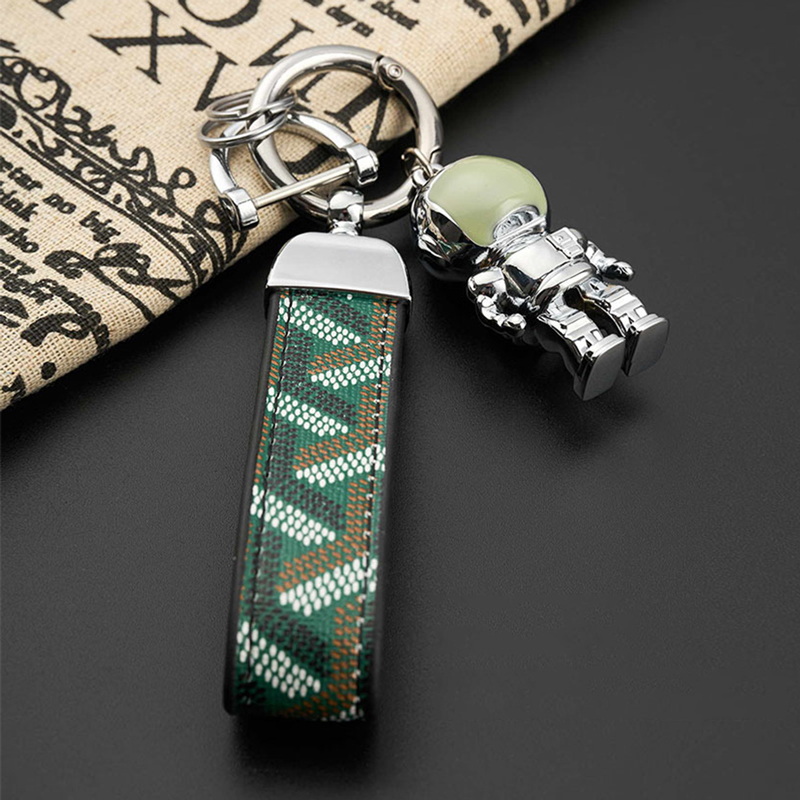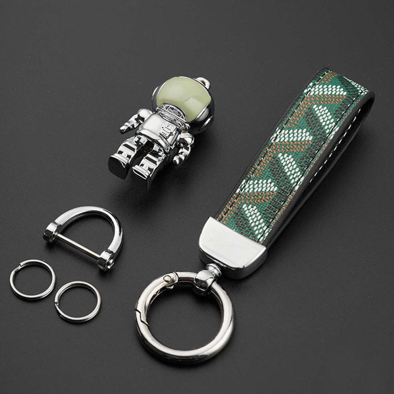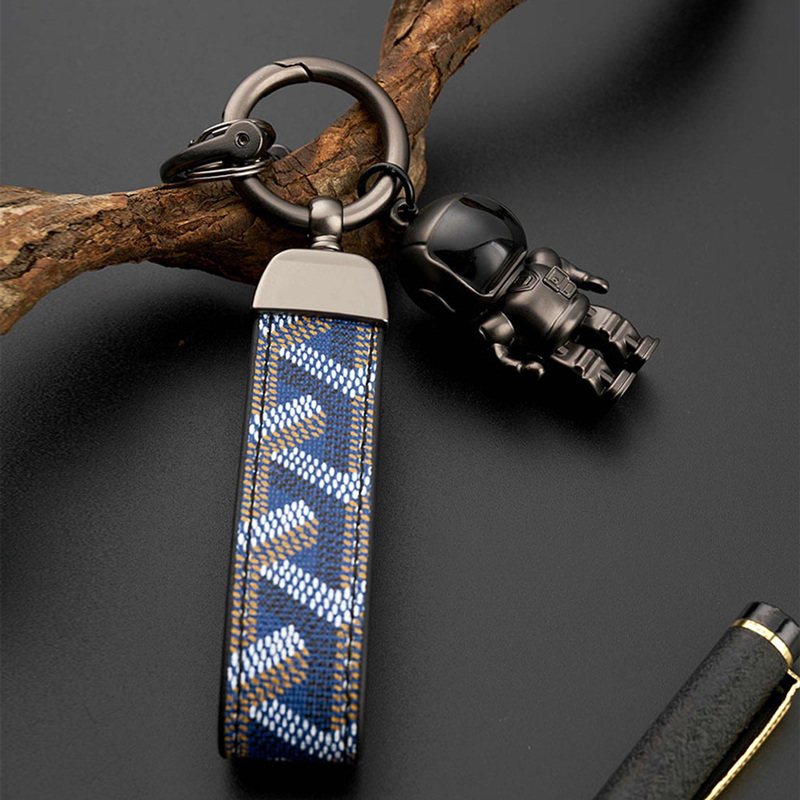 This keychain features a patterned leather strap and a sleek metal astronaut charm. With a trendy, playful design, it’s perfect for space enthusiasts as a daily key accessory, ideal for adding a unique touch to car or bag keys, and suits casual, stylish lifestyles.