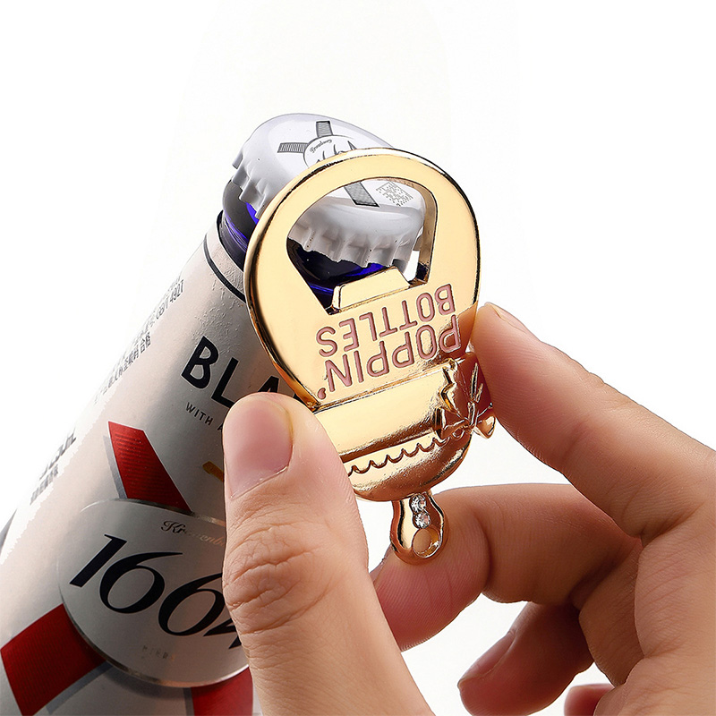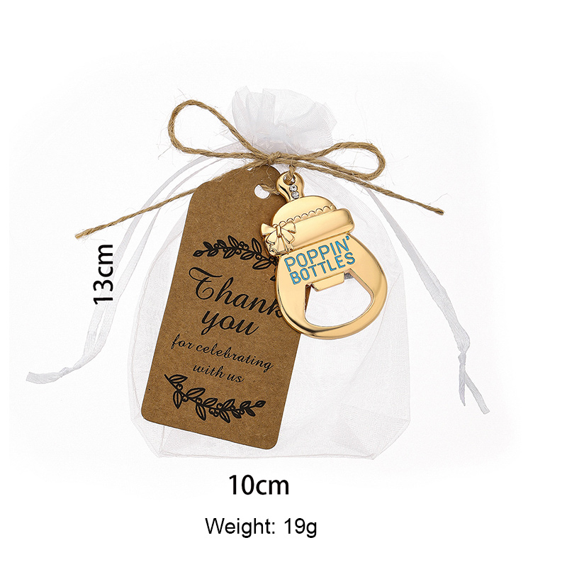 This 19g (5.9cm) gold opener mimics a baby bonnet (with a bow & gem detail), etched with "Poppin' Bottles." It pops caps easily, blending cute baby-themed charm with playful humor—ideal for baby showers, gender reveals, or a sweet gift for new parents.