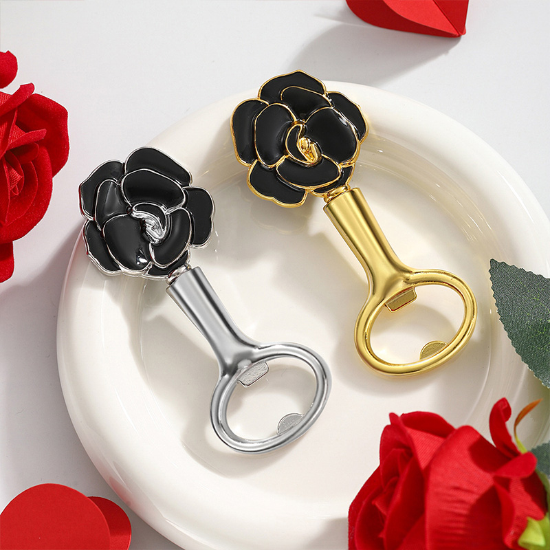 This 53g (9.6cm) opener features a sleek black enamel rose top (with metallic trim) paired with gold/silver handles. It pops caps smoothly, blending elegant, edgy floral charm with modern style—ideal for chic events, anniversaries, or a sophisticated gift for dark-aesthetic lovers.