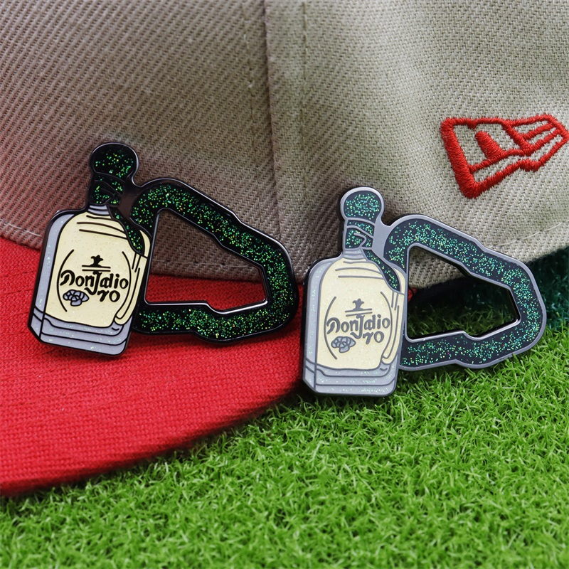 Stylish Cap/Bag DecorFeaturing 70 bottle silhouettes, green glitter accents, and brand details, these pins add chic, distinctive flair to caps/bags for trendy accessory upgrades.