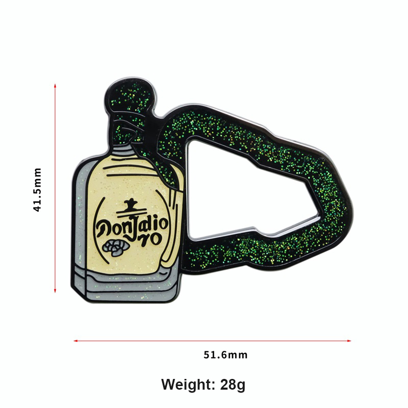 These pins feature the delicate silhouette of 70 bottles, accented with green glitter trims and clear brand details (e.g., the logo on the bottle body). Used to adorn caps or bags, they add chic, trendy charm—perfect for those favoring personalized accessories to elevate outfit details.