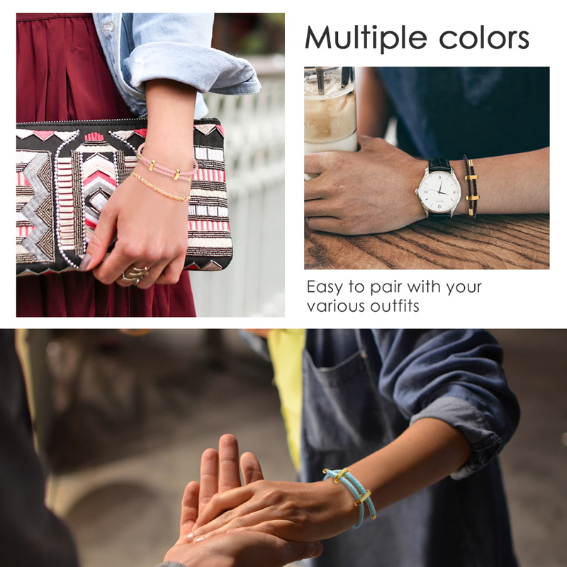 Crafted with textured braided leather and a polished gold-tone magnetic clasp, this bracelet balances casual charm and subtle luxury. Offered in four vibrant hues (pink, teal, red, black), it’s lightweight, easy to fasten, and pairs seamlessly with both casual wear and relaxed evening looks for versatile styling.