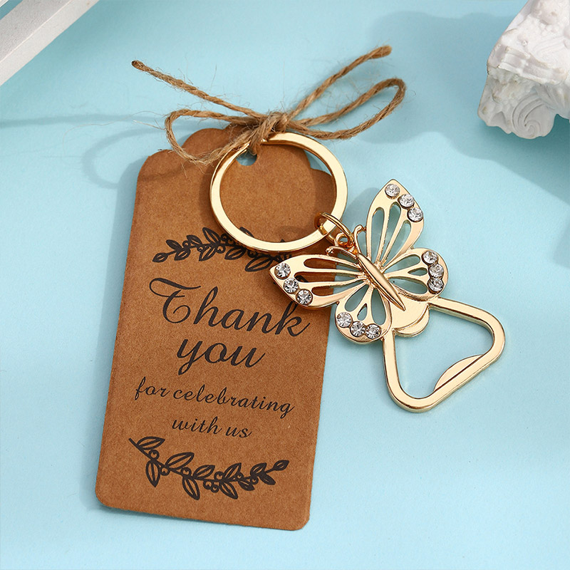 This 18g (7.7cm) rose gold opener features a diamond-adorned butterfly design (plus a keychain). It opens bottle caps easily, doubling as a stylish accessory—ideal for party favors, wedding gifts, or daily use to add a touch of delicate charm.