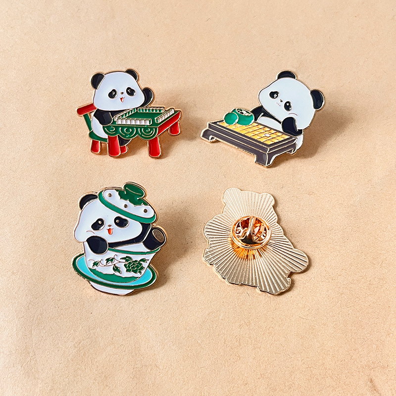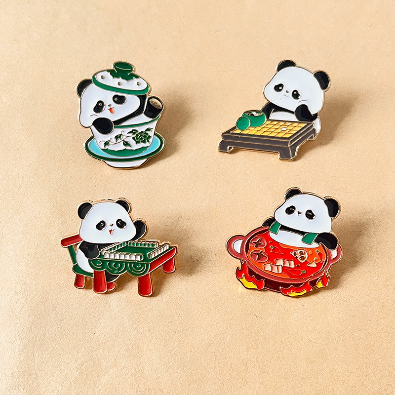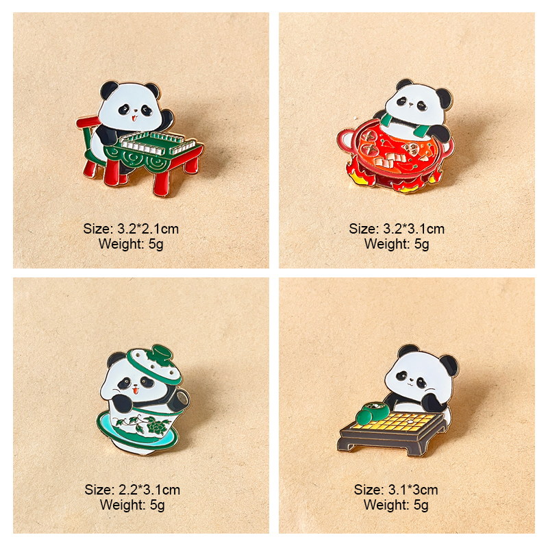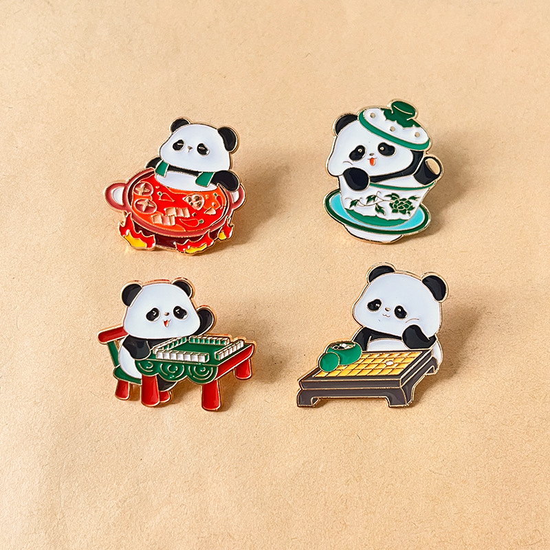 These 4 adorable panda pins showcase classic Chinese activities (mahjong, hot pot, etc.), mixing cultural charm with cute flair. Ideal for panda/culture lovers to add unique style to bags/jackets—great for daily wear or infusing spaces with playful cultural decor.