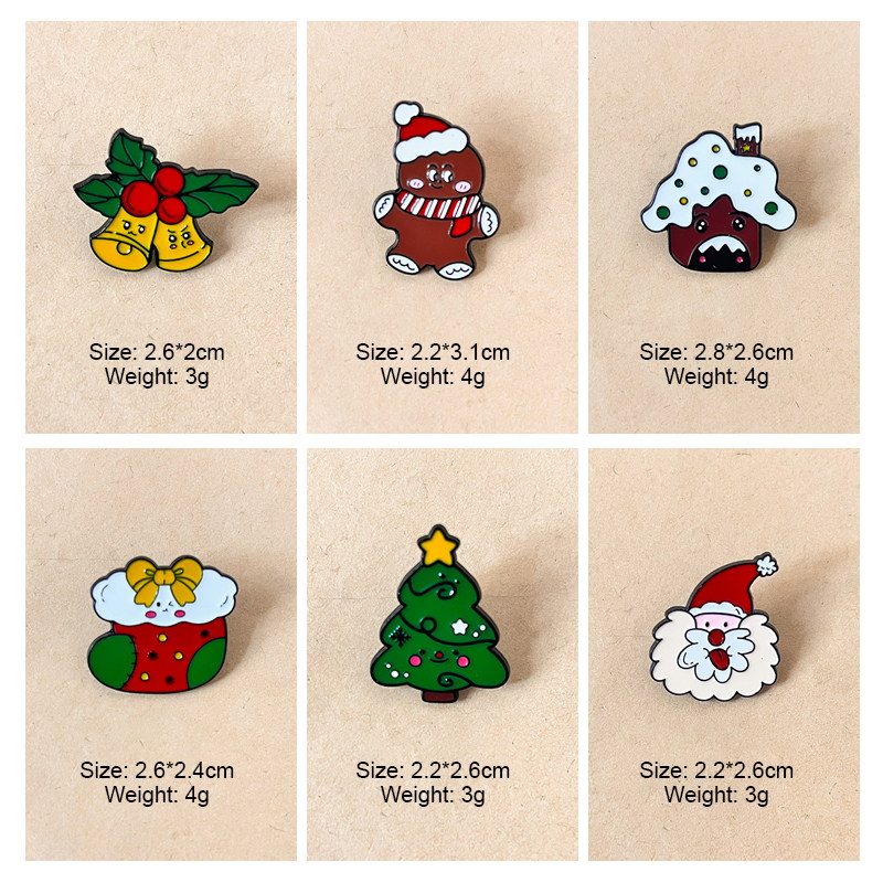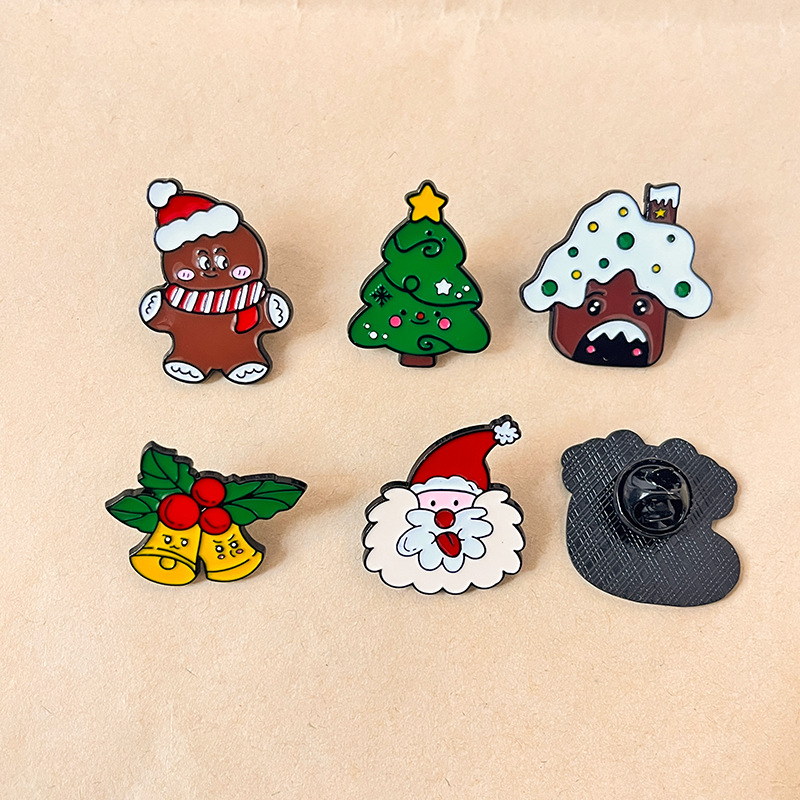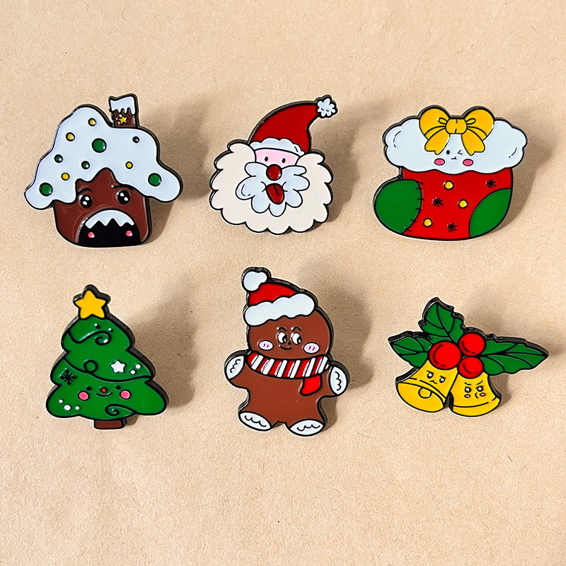 This Christmas pin set has 6 glossy enamel designs (gingerbread man, stocking, tree, bells, gingerbread house, Santa)—cozy, cheerful nods to holiday spirit. For festive fans, it adds warm flair to bags/jackets, ideal for holiday styling or seasonal, whimsical accessory decor.