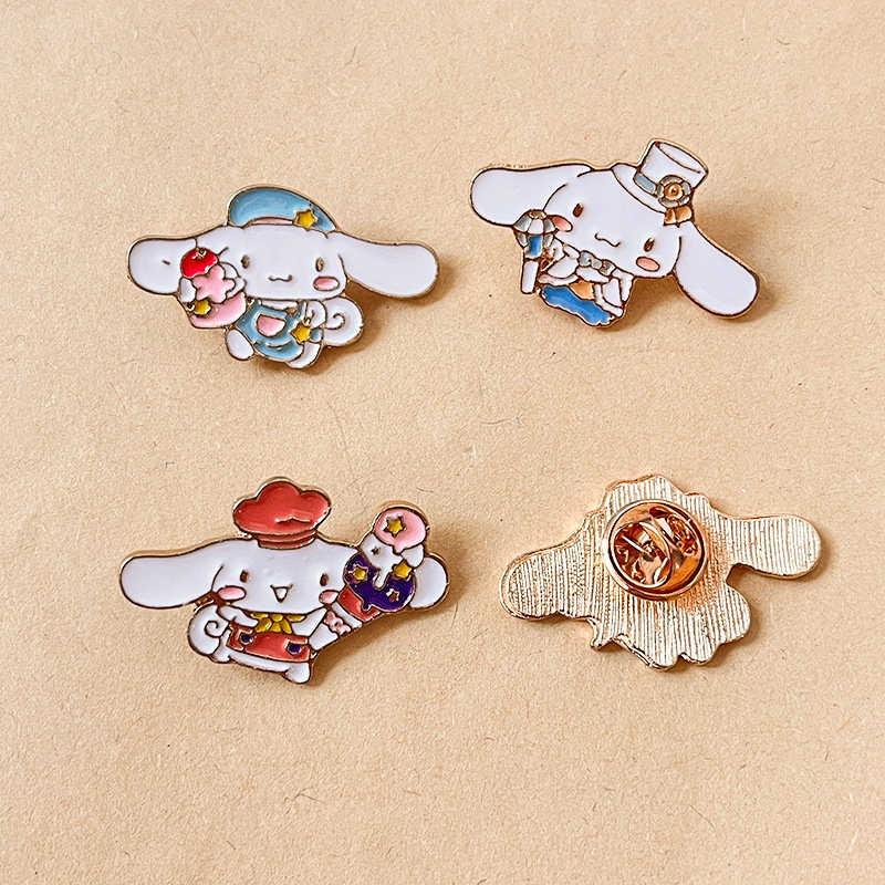 These 4 adorable Cinnamoroll pins showcase varied charming outfits (chef, cowboy, etc.)—oozing whimsical, sweet flair. Ideal for Sanrio fans to add delicate, cute style to bags/jackets; great for daily wear or showcasing your lovely character collectibles.
