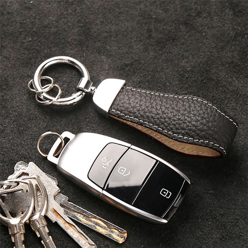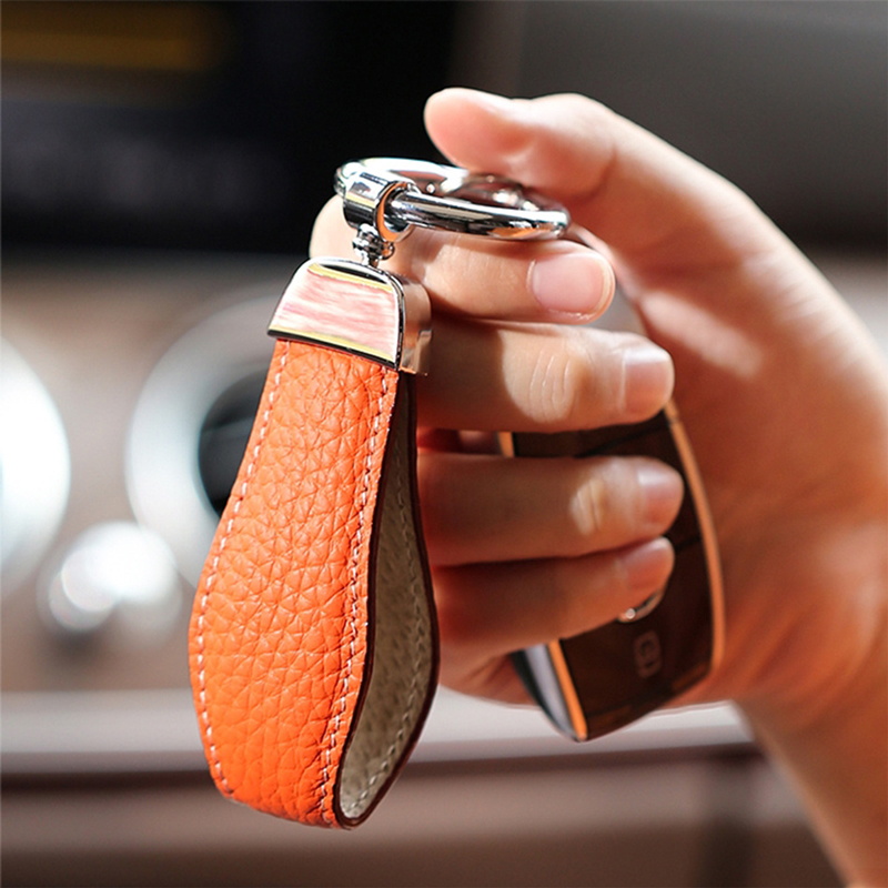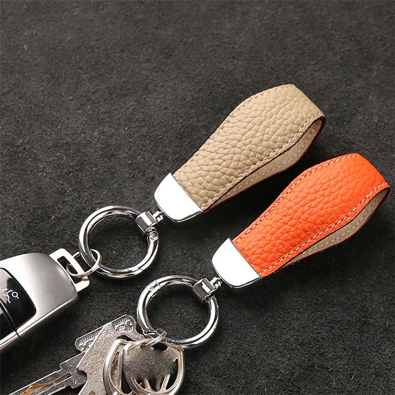 Boasting genuine leather straps in black, orange, and beige, paired with polished metal hardware, this keychain set exudes a sophisticated and minimalist vibe. It’s perfect for professionals to accessorize their keys daily, adding a touch of luxury to car or office keys, and fits seamlessly into both formal and casual scenarios.
