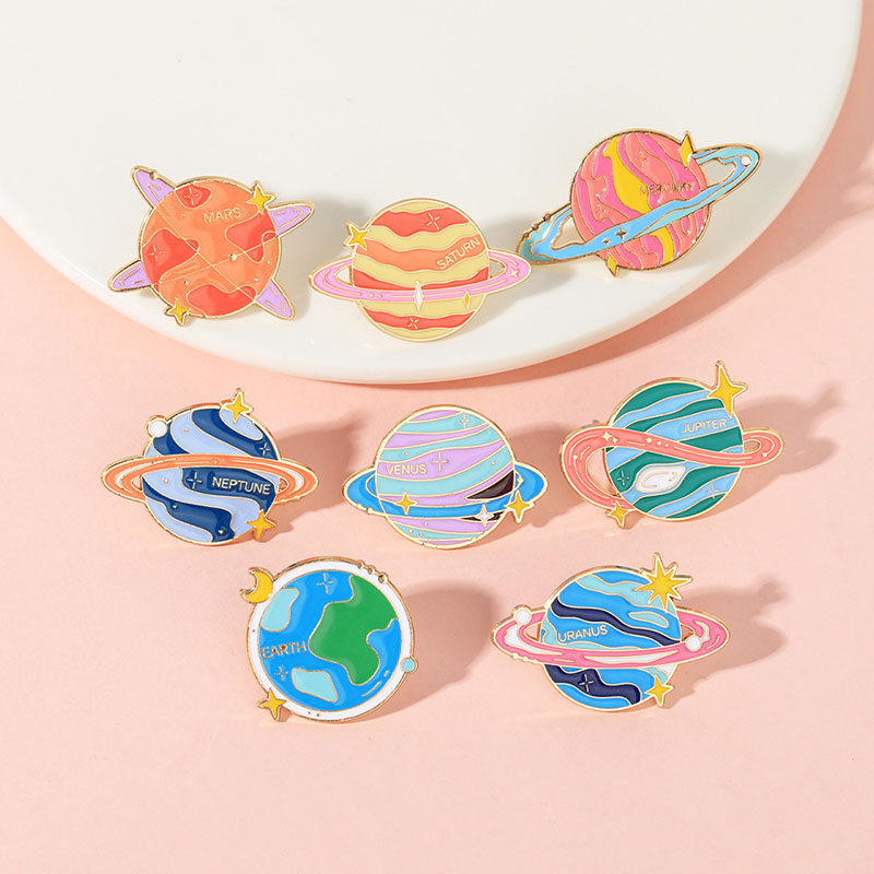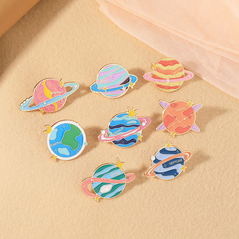 This solar system pin set has 7 vibrant, glossy planet designs (Jupiter, Mercury, Uranus, Saturn, Neptune, Mars, Earth)—playful, cosmic nods to space. For space fans, it adds whimsical flair to bags/jackets, ideal for daily styling or colorful galactic-themed accessory decor.