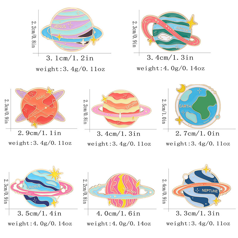 Features 7 vibrant planet designs (Jupiter, Mercury, Uranus, Saturn, Neptune, Mars, Earth) with playful cosmic vibes. Perfect for space fans to add whimsical flair to bags/jackets—ideal for daily styling or galactic-themed accessory decor.