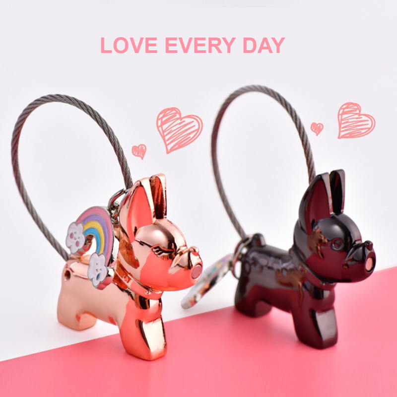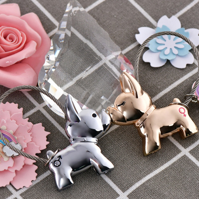 This keychain set features two French Bulldog charms—one rose gold with a rainbow charm, one black—with magnetic connection and cable loops. With a playful, trendy design, it’s perfect for couples as matching key accessories, ideal for daily use or gifting, adding a fun, stylish touch to keys while symbolizing companionship.