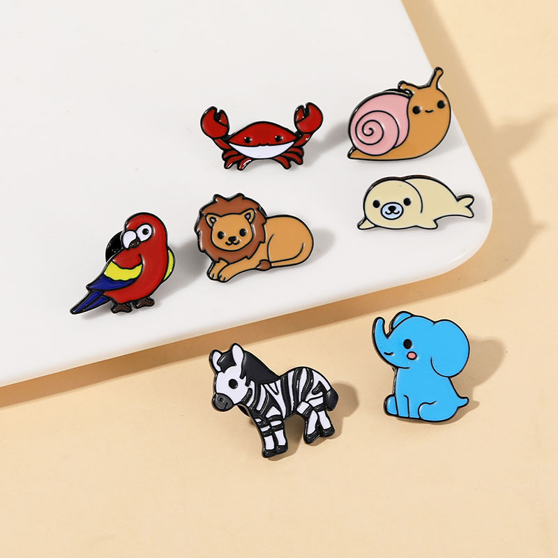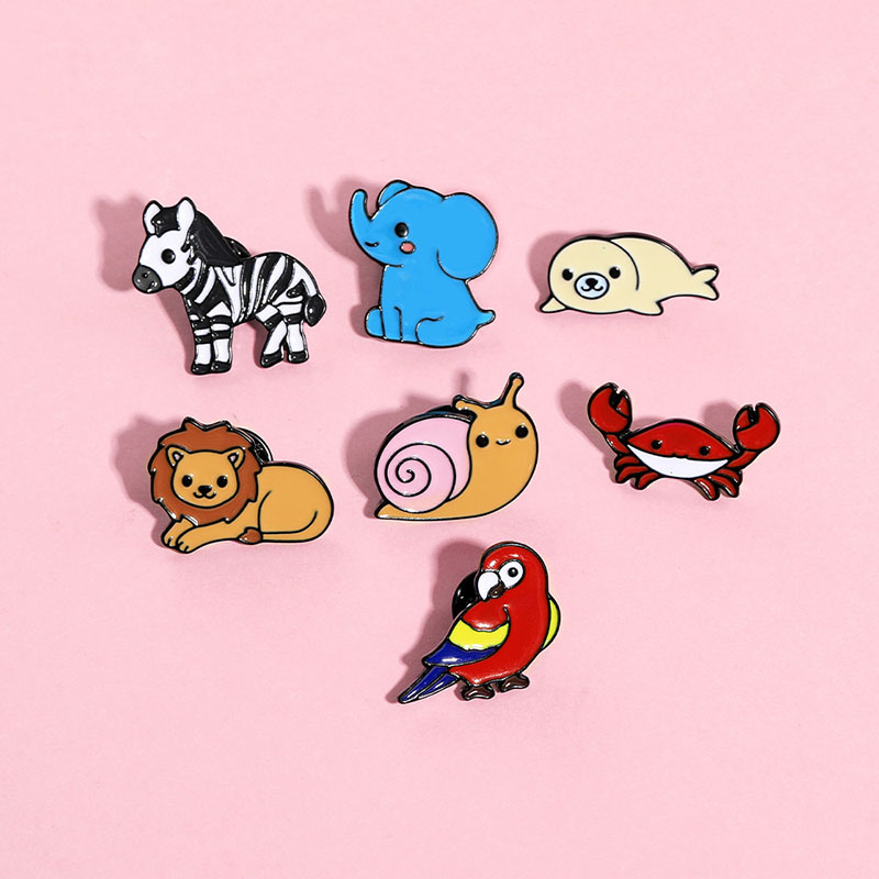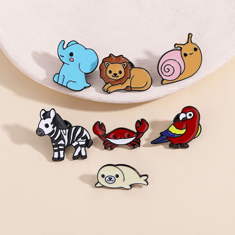 This cute animal pin set has 7 glossy enamel designs (elephant, lion, snail, zebra, crab, parrot, seal)—charming, playful nods to wildlife. For animal lovers, it adds whimsical flair to bags/jackets, ideal for daily styling or adorable wildlife-themed accessory decor.