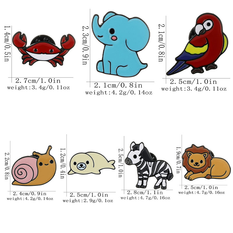 Features 7 glossy designs (elephant, lion, snail, zebra, crab, parrot, seal) with charming, playful vibes. Perfect for animal lovers to add whimsical flair to bags/jackets—ideal for daily styling or cute wildlife-themed accessory decor.