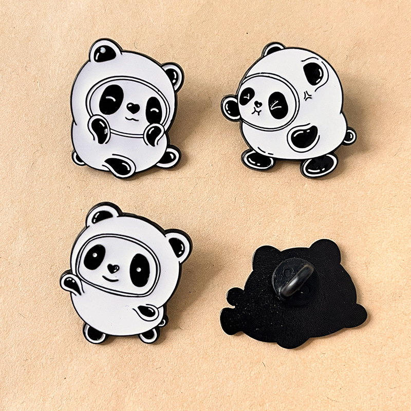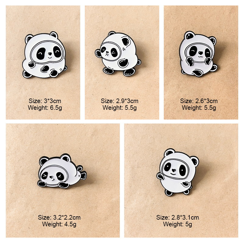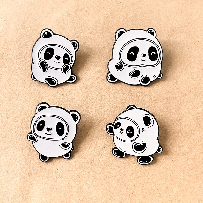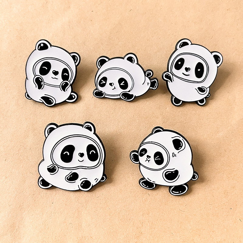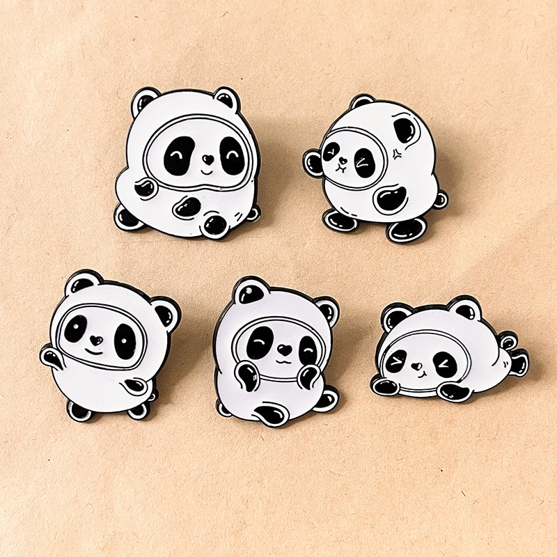 Crafted with sleek enamel and crisp black outlines, these 5 panda pins feature playful expressions (smiling, winking, heart-eyed)—blending minimalist monochrome style with squishy-cute charm. Perfect for adding subtle whimsy to bags/jackets or collecting as adorable panda keepsakes.