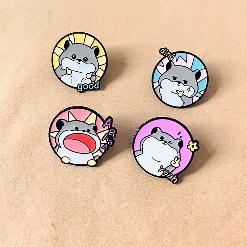 Features round-shaped hamsters with vivid expressive designs (good, yeah, etc.) and glossy enamel. Ideal for adding playful charm to bags, jackets, or hats—perfect for casual styling or mood-themed accessory accents.