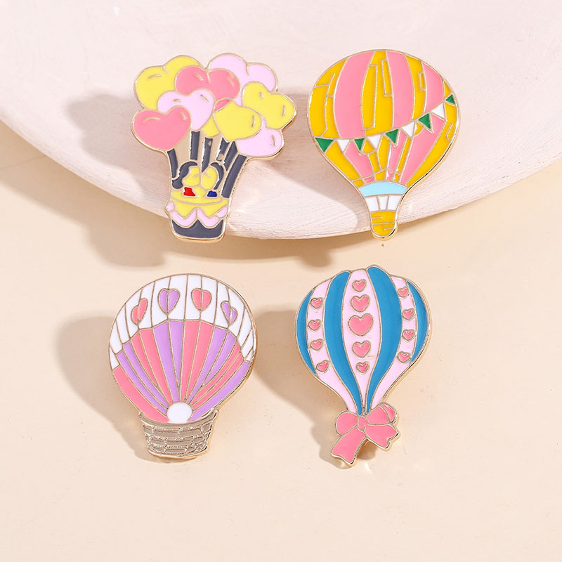 This hot air balloon pin set has 4 playful designs (striped, heart-patterned, heart-bundle balloons)—pastel, romantic nods to travel. For travel/romance fans, it adds cheerful flair to bags/jackets, ideal for daily styling or charming sweet travel-themed accessory decor.
