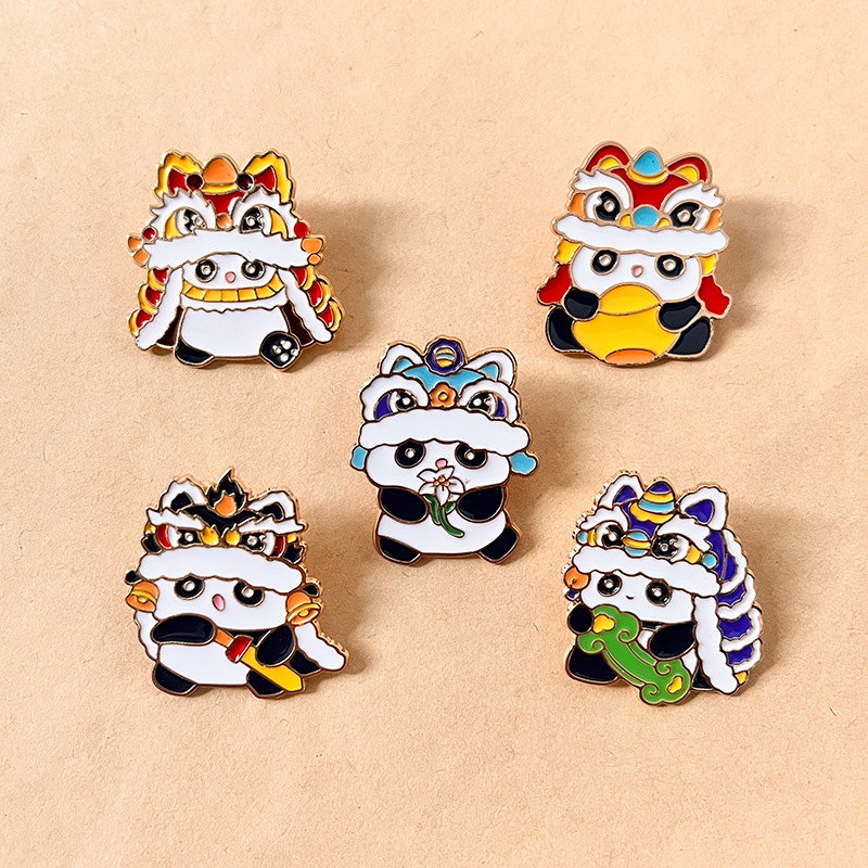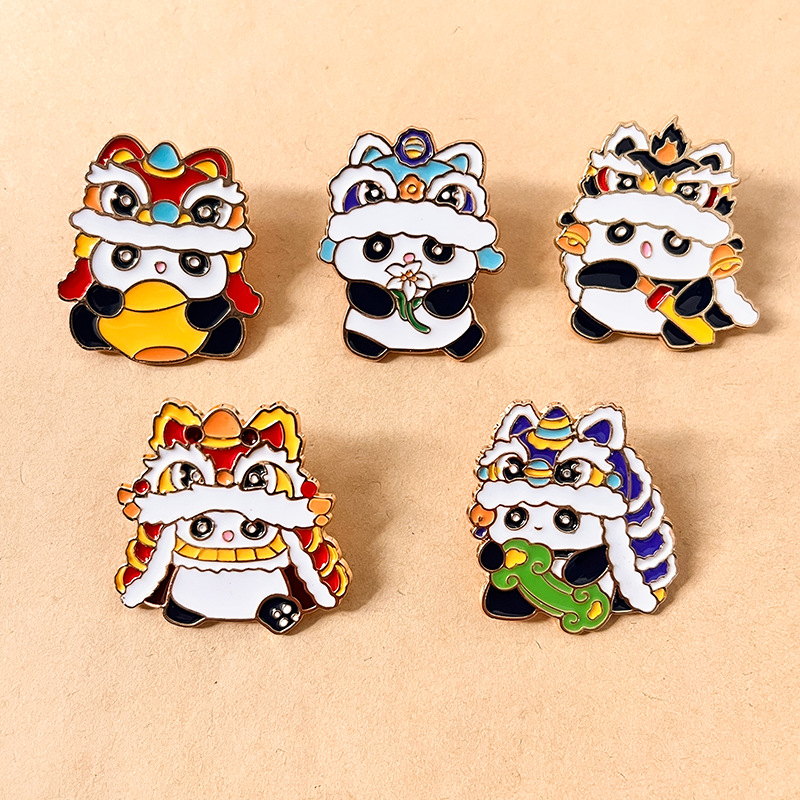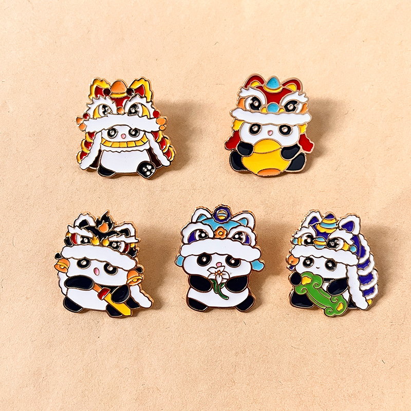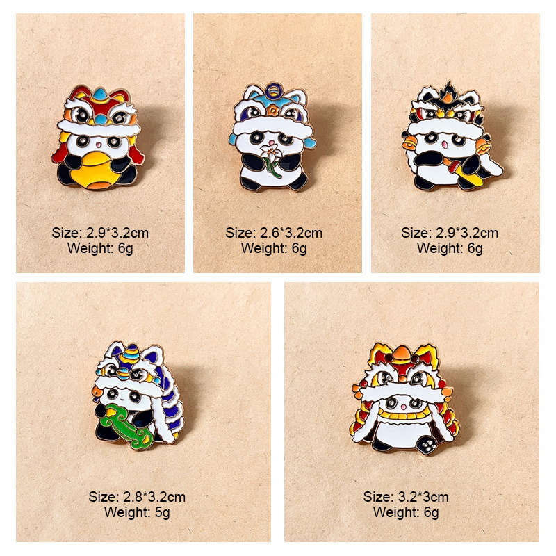 These 5 adorable panda pins feature vibrant lion dance costumes, merging traditional Chinese cultural flair with cute charm. Ideal for culture lovers to add festive, eye-catching style to bags/jackets—great for daily wear or traditional-themed decor.