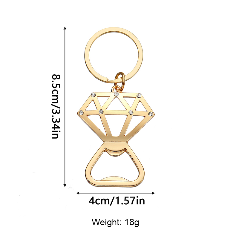 This 18g (8.5cm) opener is shaped like a glittering diamond (gold finish with crystal accents) and doubles as a keychain. It pops caps smoothly, blending glamorous decor style with practical portability—ideal for weddings, bachelorette parties, or a chic gift for accessory lovers.