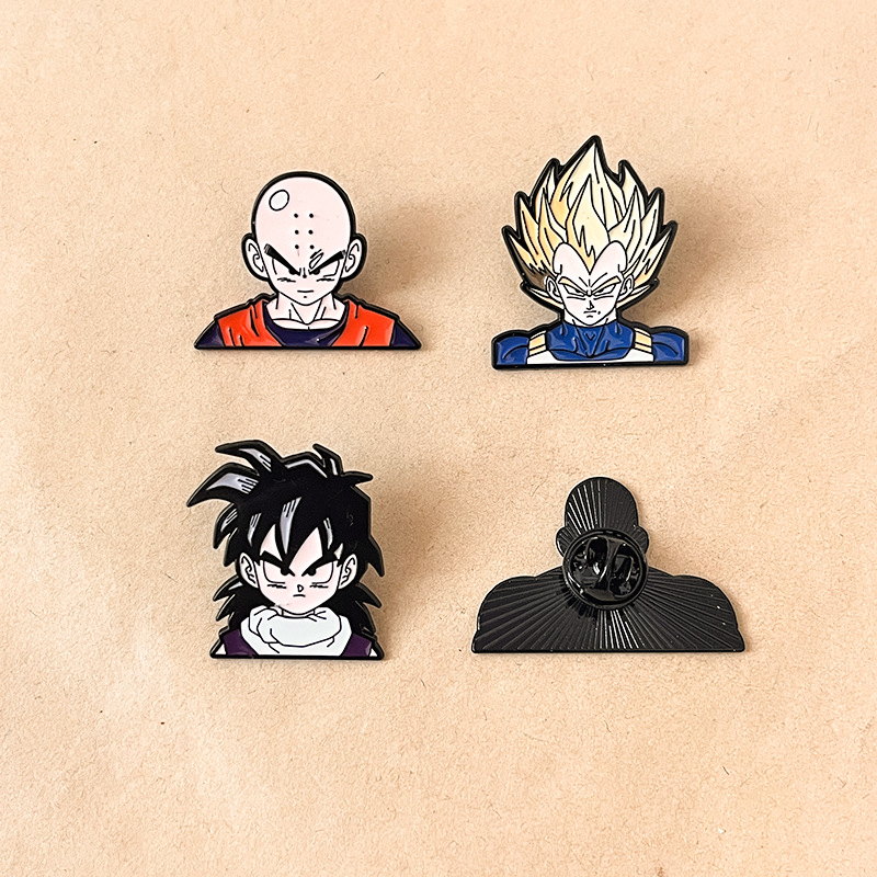 Features iconic Dragon Ball figures (Goku, Vegeta, Krillin, etc.) with vibrant, anime-style enamel. Ideal for fans to add nostalgic, fandom flair to jackets, bags, or hats—perfect for anime-themed daily styling.