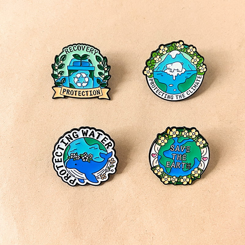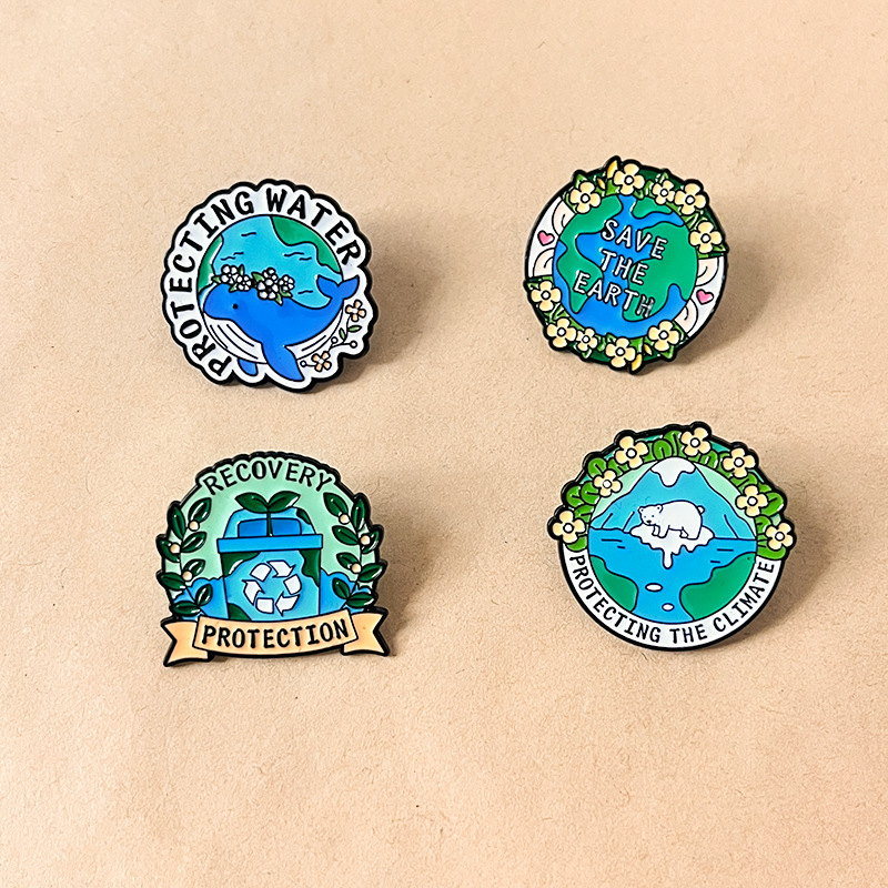 This eco-advocacy pin set has 4 glossy enamel designs (recycling, climate action, water protection, "Save the Earth")—vibrant, hopeful nods to environmental care. For eco-supporters, it adds meaningful flair to bags/jackets, ideal for green styling or advocacy-focused accessory decor.