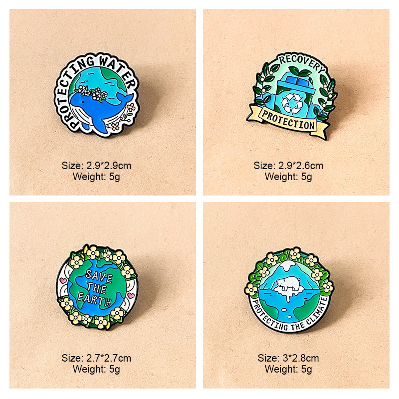 Includes 4 glossy enamel designs (recycling, climate, water protection, "Save the Earth") with vibrant, hopeful motifs. For eco-supporters, add meaningful flair to bags/jackets—ideal for green styling or environmental advocacy accessory decor.