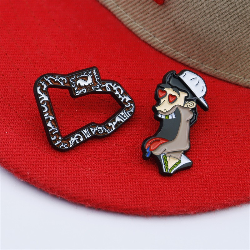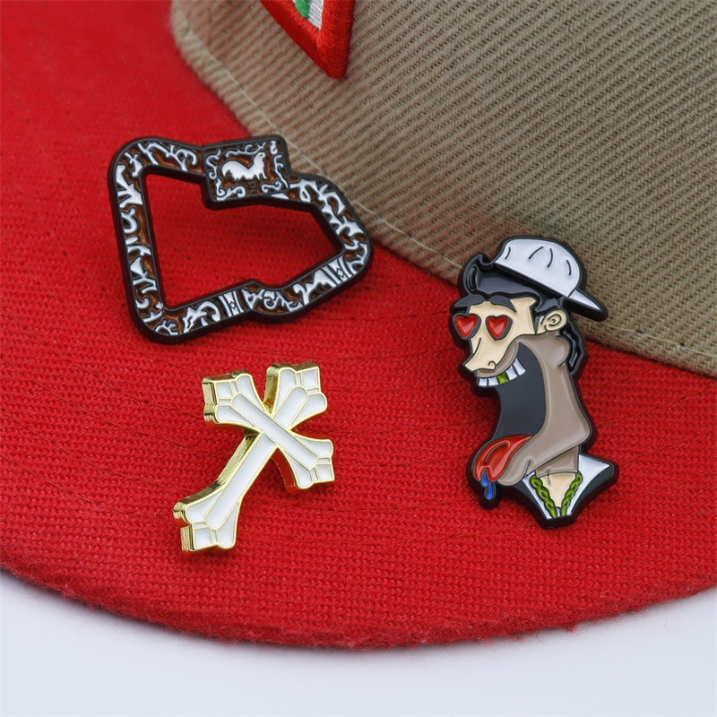 Bold Cap/Bag DecorFeaturing a patterned hollow shape, a gold crossbone, and a cartoon character (heart eyes, tongue out), these pins blend edgy & playful flair—ideal for adding bold, unique charm to caps/bags.