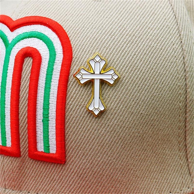 These pins feature hollow, ornate silhouettes (with floral-enamel details), framed in shiny gold and dotted with sparkling green gems. Used to adorn caps or bags, they infuse luxurious, intricate charm—perfect for elevating accessories with eye-catching, opulent flair.