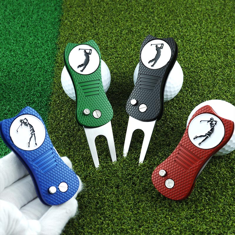 This 110g (10.2cm) tool comes in blue/red/green/black, with designs like UK/US flags or golfer silhouettes. Its textured grip and stainless steel fork make green repairs easy—stylish, durable, and perfect for adding personalized, thematic flair to your golf kit.
