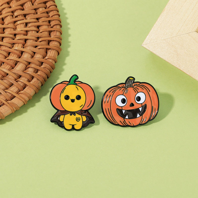 This Halloween pumpkin pin set has 2 glossy enamel designs: a pumpkin-costumed bear and a grinning jack-o'-lantern, brimming with playful spooky charm. For festive fans, it adds whimsical flair to bags/jackets—ideal for Halloween styling or seasonal, eerie-cute accessory decor.