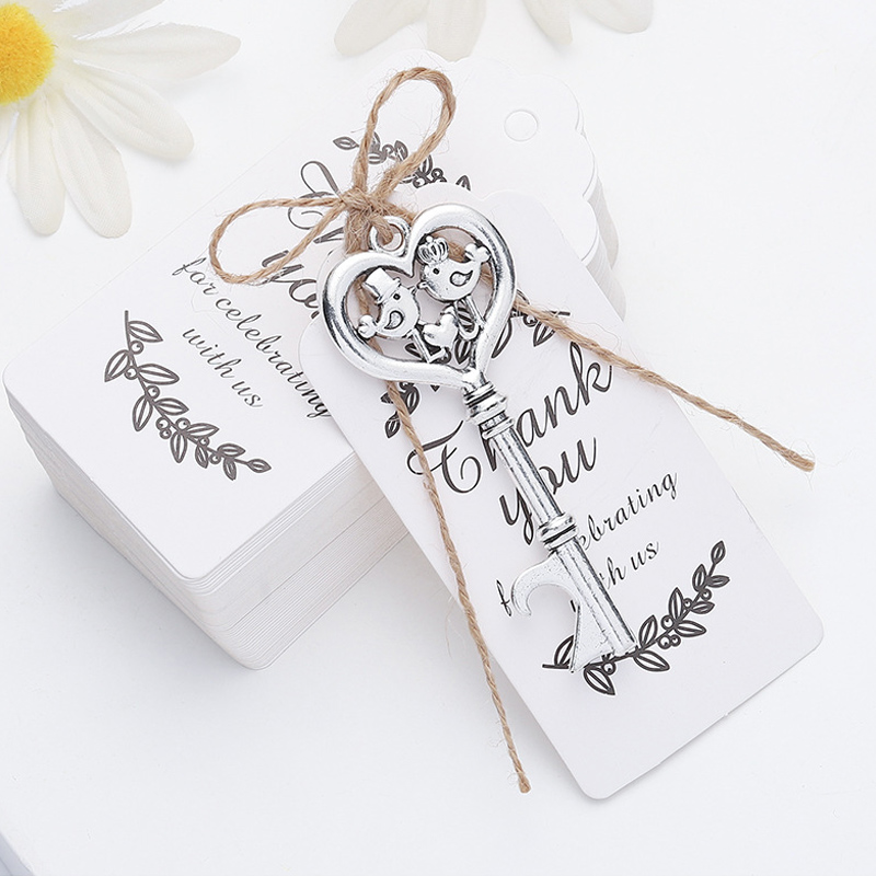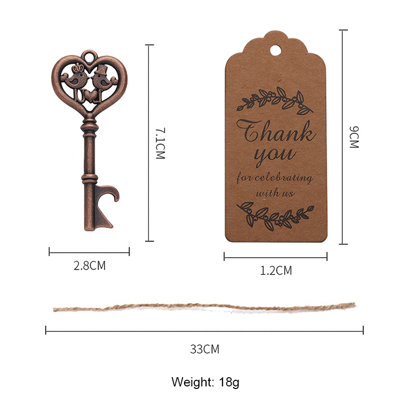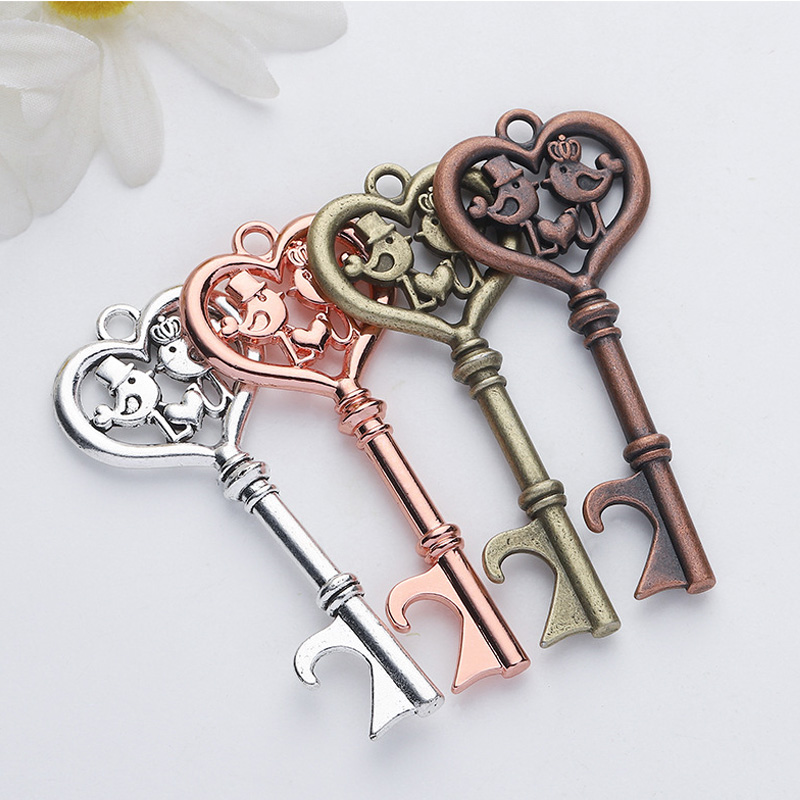 This 18g (7.1cm) opener mimics a heart-topped key, featuring a cartoon couple (king & queen). Available in bronze/silver/rose gold, it pops caps easily—ideal for fairy-tale weddings, engagement parties, or a whimsical gift for romantic gathering attendees.