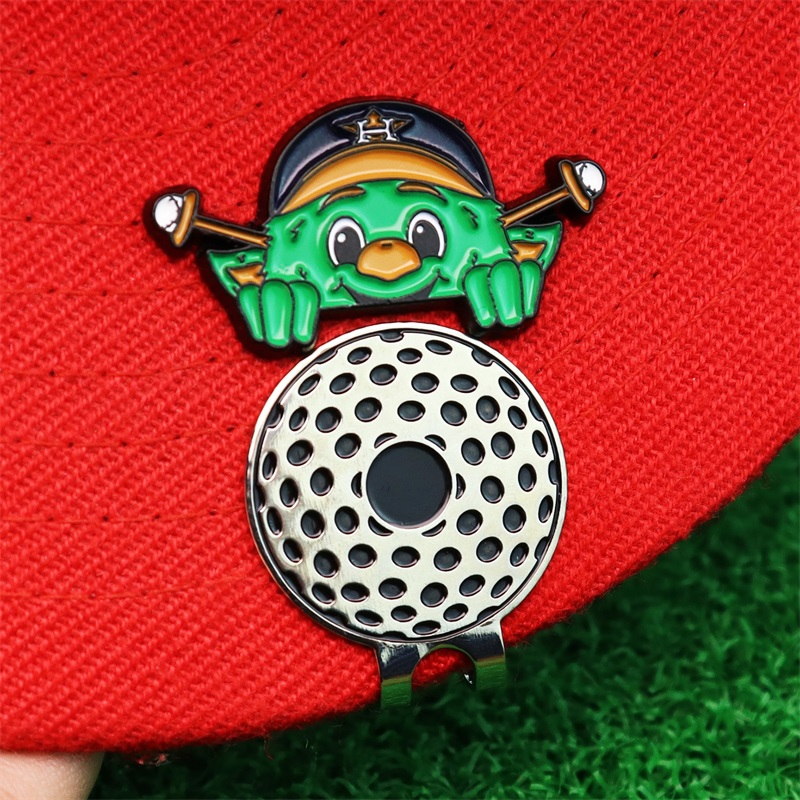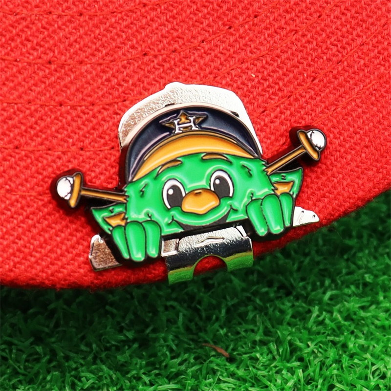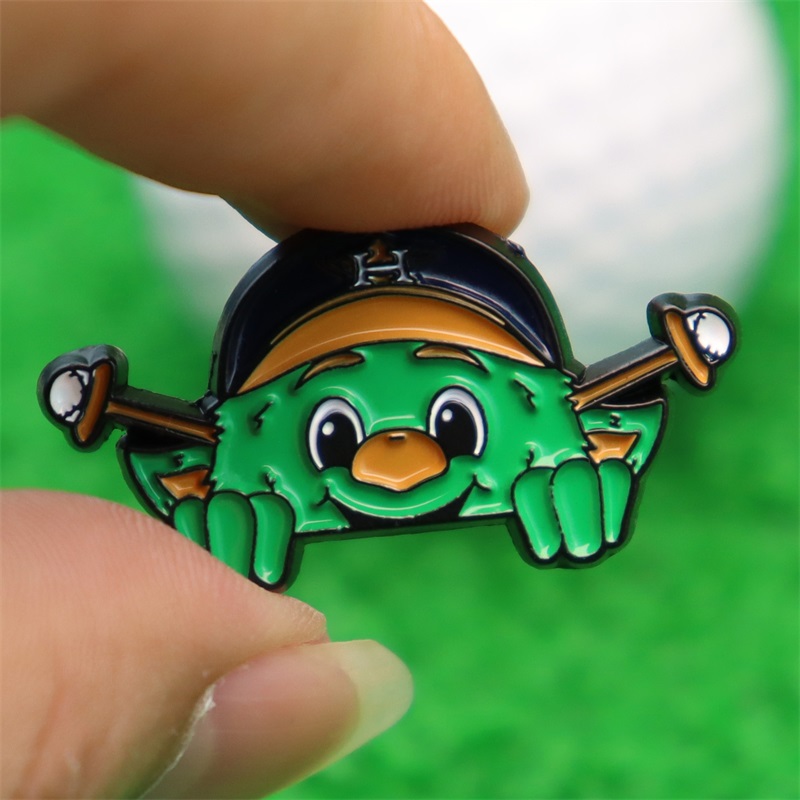 Fun Fan Accessory, This pin showcases the cute green Houston Astros mascot (team cap + crossed golf clubs), acting as a golf marker & cap/bag decor—perfect for adding team-spirited, playful flair for Astros and golf fans.