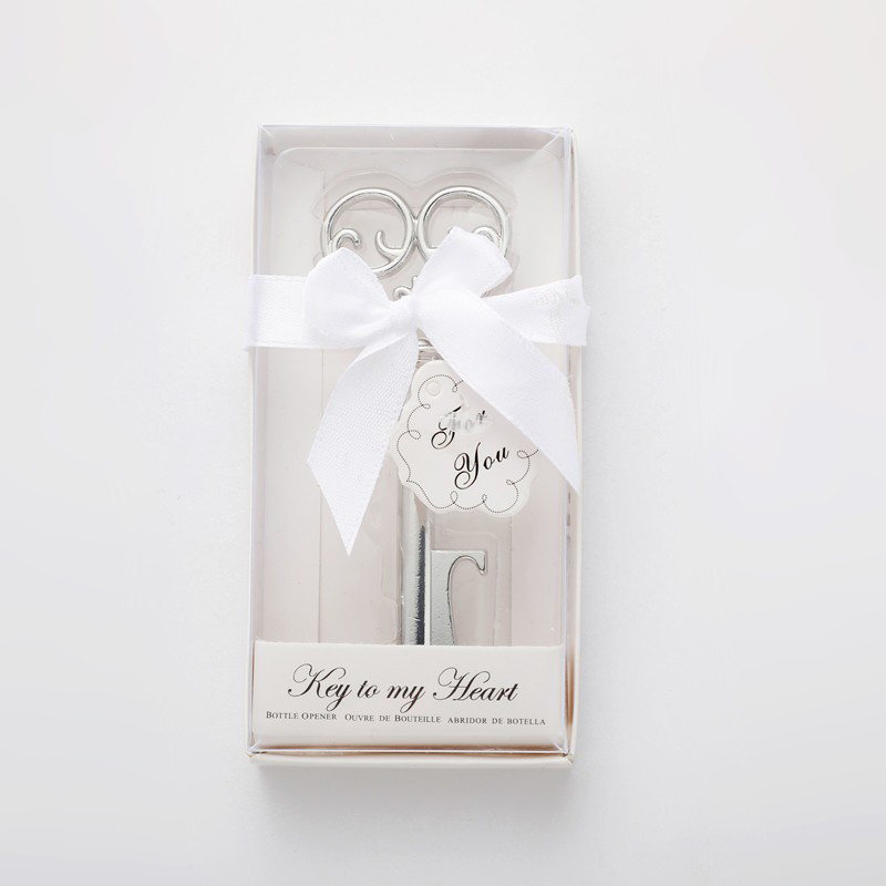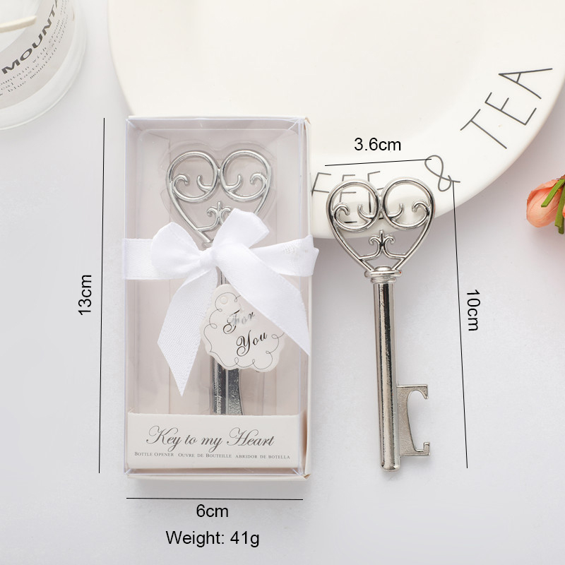 This 41g (10cm) silver opener mimics a decorative key with an ornate heart-shaped handle, etched with "Key to my Heart." It pops caps smoothly, blending romantic charm with vintage elegance—ideal for weddings, anniversary parties, or a heartfelt gift for loved ones.