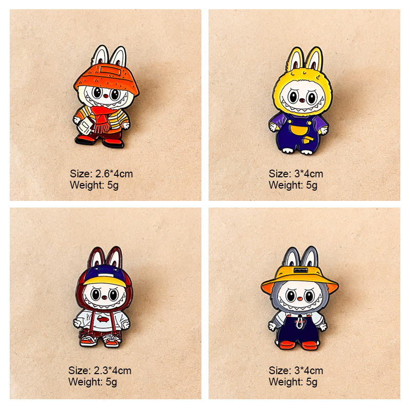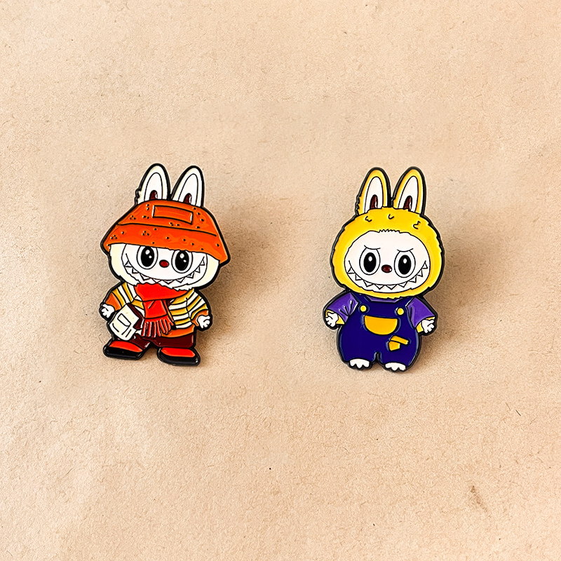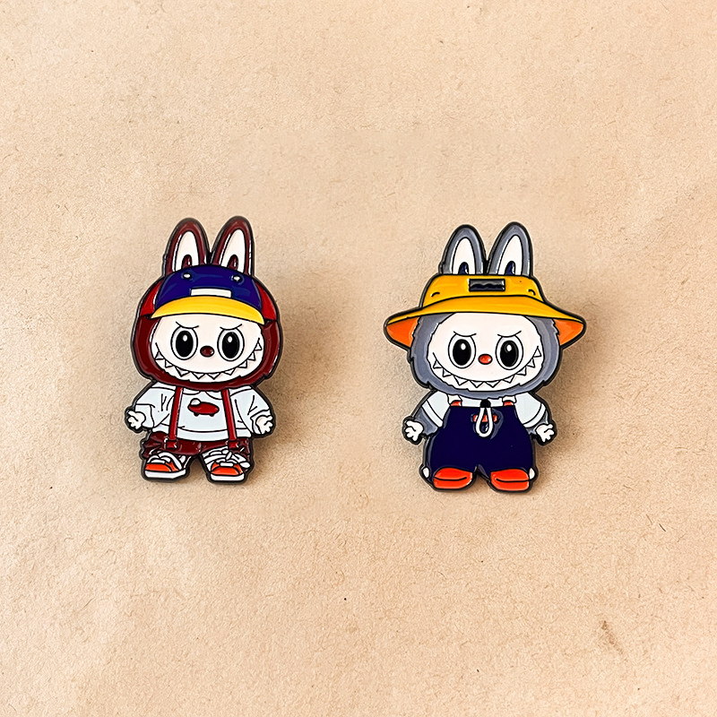 These Labubu pins take the iconic bunny-eared shark shape, with varied trendy outfits (hats, overalls) and vivid, cute details. They decorate caps or bags, adding playful charm—ideal for cute-style lovers to spruce up accessories with adorable flair.