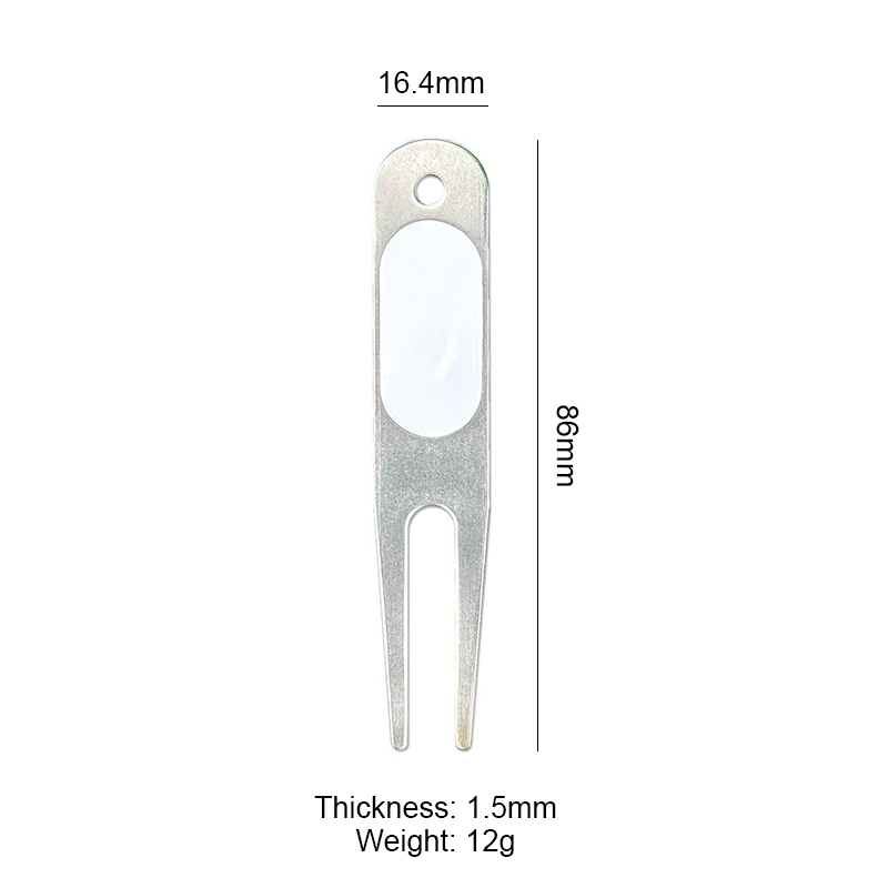 This 12g (86mm) tool (silver/grey) features a slim 1.5mm design, built-in ball marker, and a keyhole for easy carrying. Durable stainless steel makes green repairs effortless—compact, practical, and perfect for minimalist golf gear.