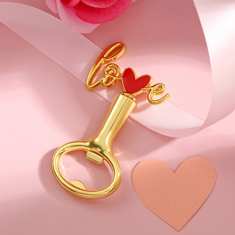 This 37g (8.5cm) opener features cursive "love" with a red heart, in glossy gold/silver. It pops caps easily, making it a romantic favor for weddings, Valentine’s parties, or a sweet gift for couples and love-themed gathering attendees.