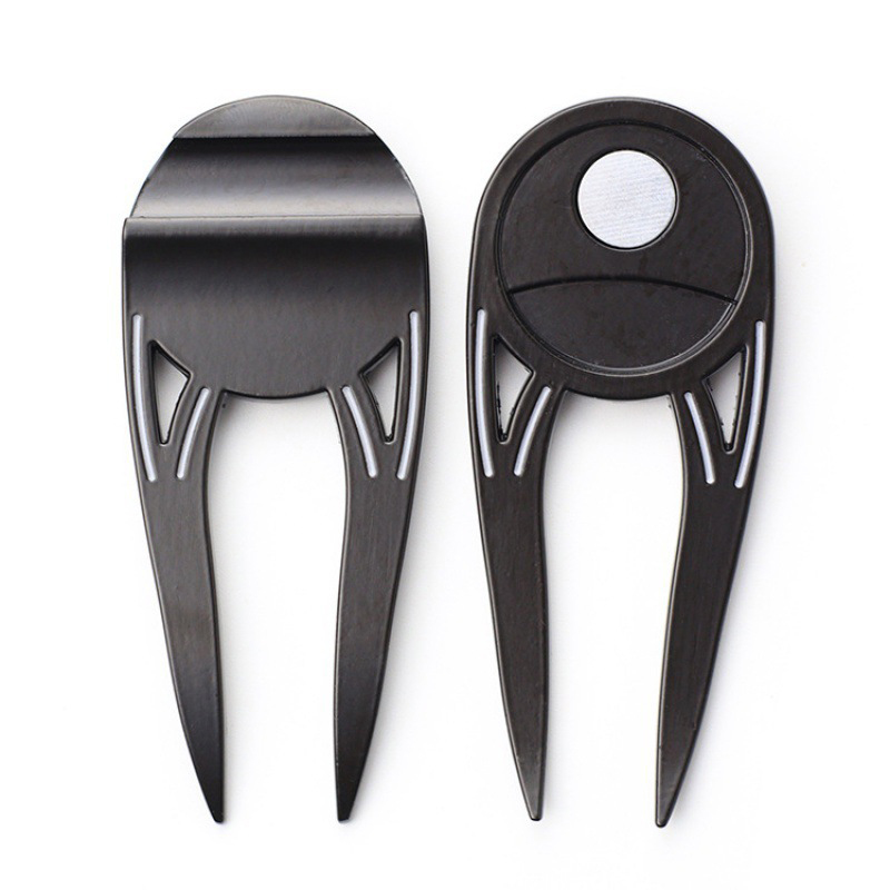 2-in-1 Green Repair & Ball Marker, Durable metal build, built-in magnet secures marker, sharp tines fix greens easily. Sleek, compact—essential on-course gear for golfers.
