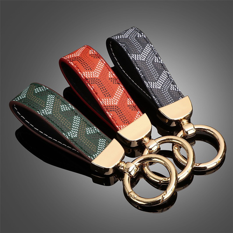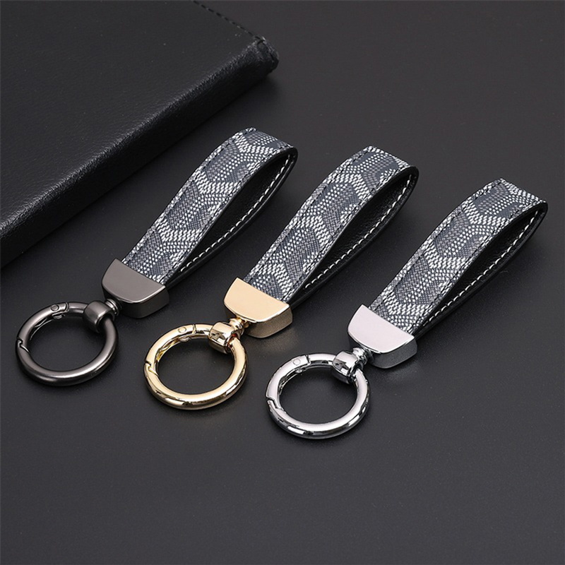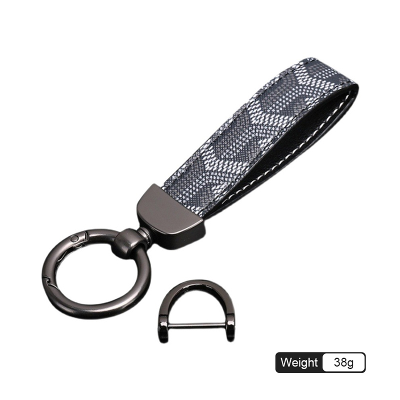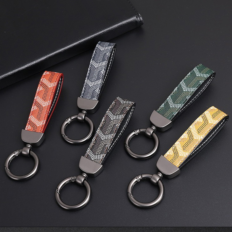 These keychains blend patterned leather (in vibrant hues like orange, gray, and yellow) with sleek metal hardware, boasting a chic, modern design that’s perfect for trendsetters to elevate keys or bags—ideal as a stylish daily essential or a tasteful gift for the design-savvy.