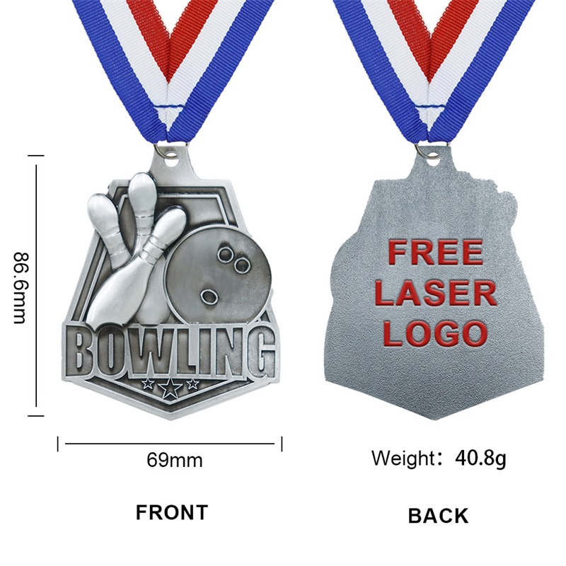 These medals, in antique gold, antique silver, and antique copper, feature bowling pins and ball designs. With a sporty style, they’re ideal for bowling competitions, awarding excellence and adding a vintage touch to sports events.