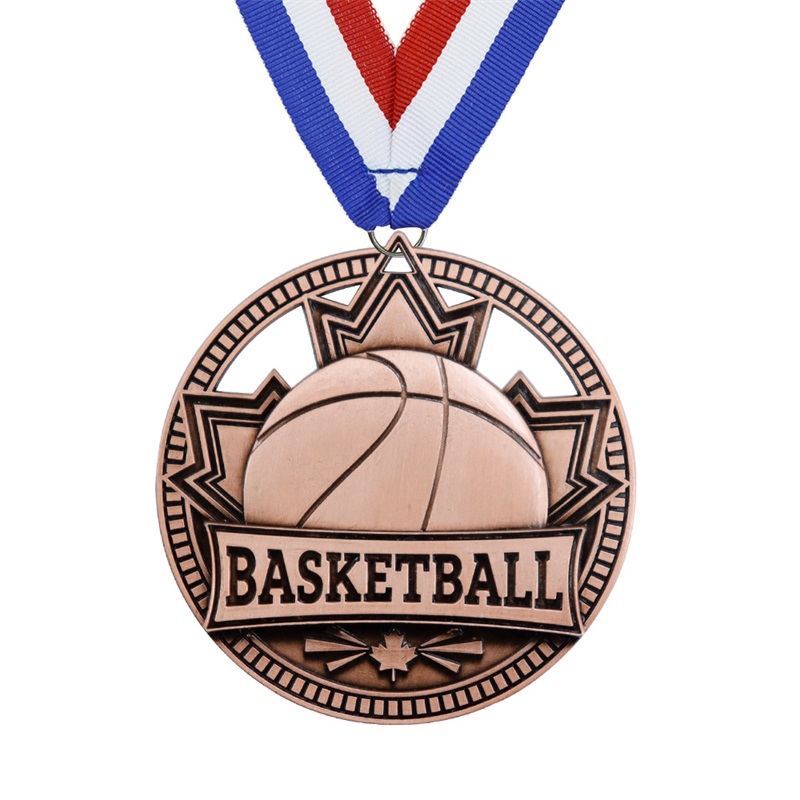 Tailored for basketball events, this antique gold/silver/red copper medal suits youth league championships, high school tournament MVPs, and team sportsmanship awards. Its star-basketball design and durable build make it a standout prize for recognizing skill, teamwork, and achievement across all levels of hoops competition.