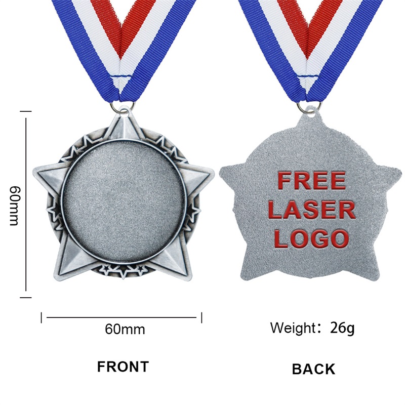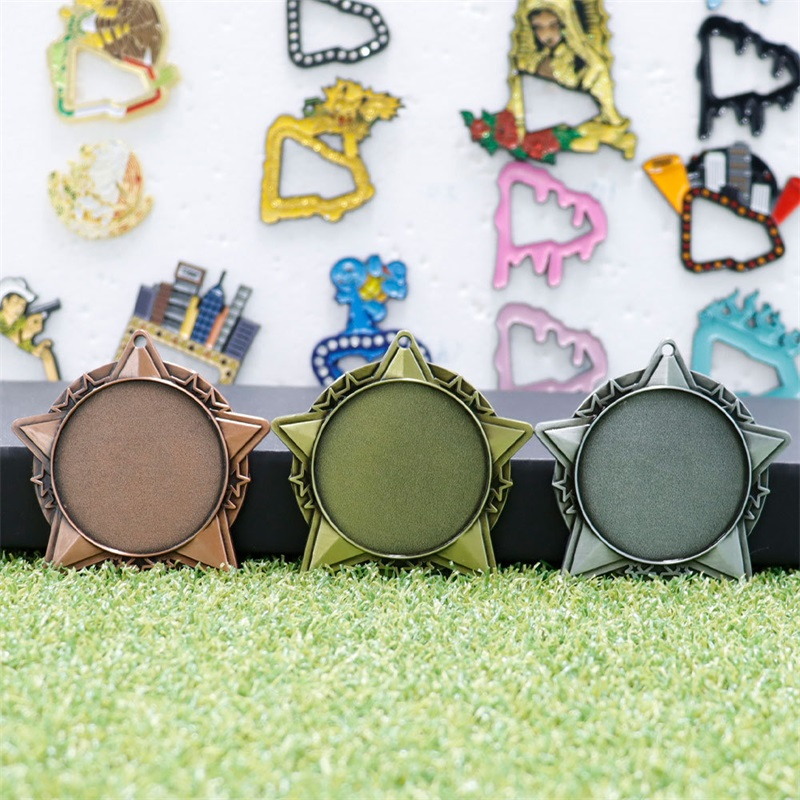 This star-shaped medal (antique gold/antique silver/antique red copper metal) carries a rich, retro texture. Its central blank panel is designed for custom stickers—perfect for adding event logos, names, or achievement details. Ideal for competition rewards, team honors, or personalized recognition, it merges timeless style with tailored, on-demand customization.