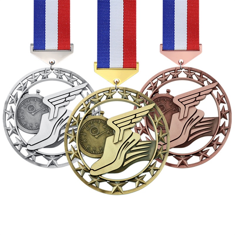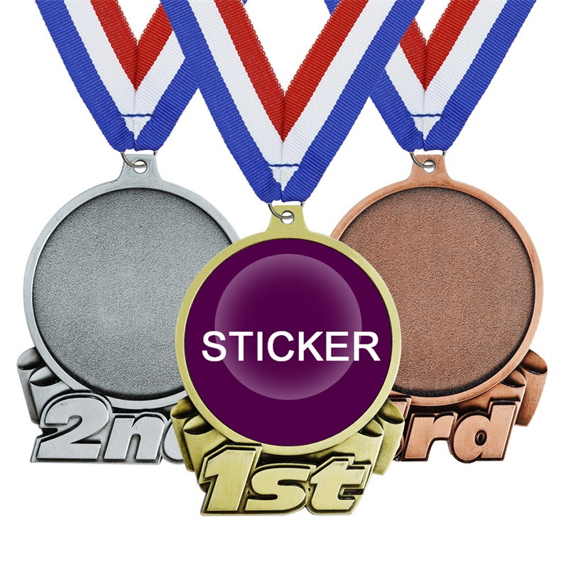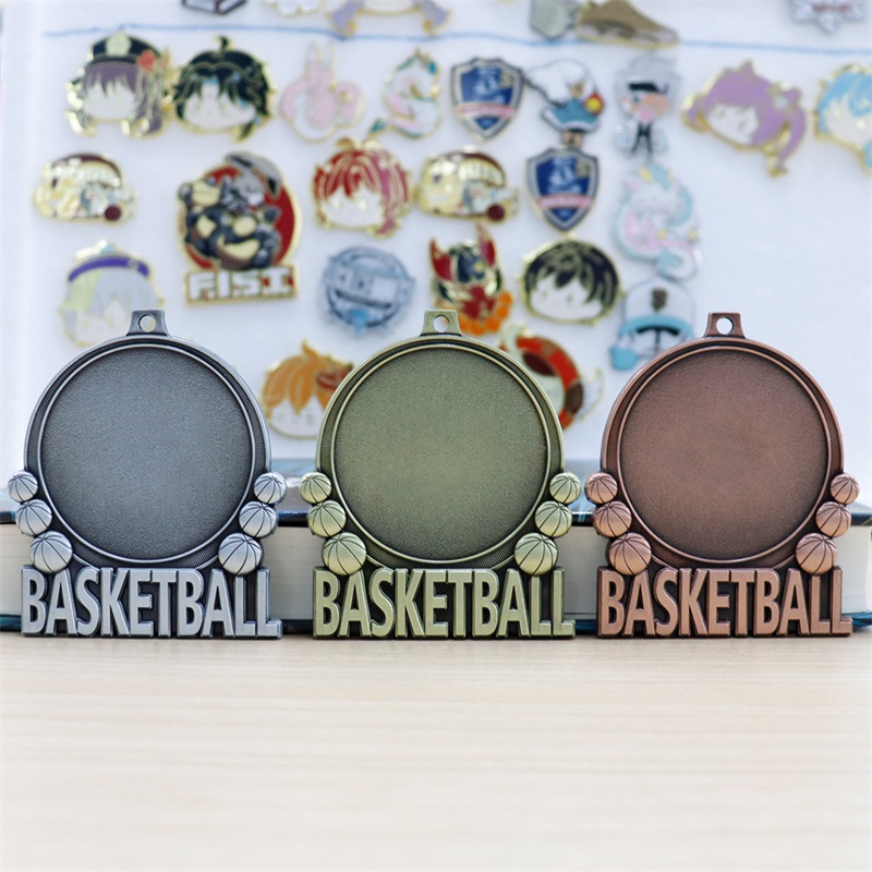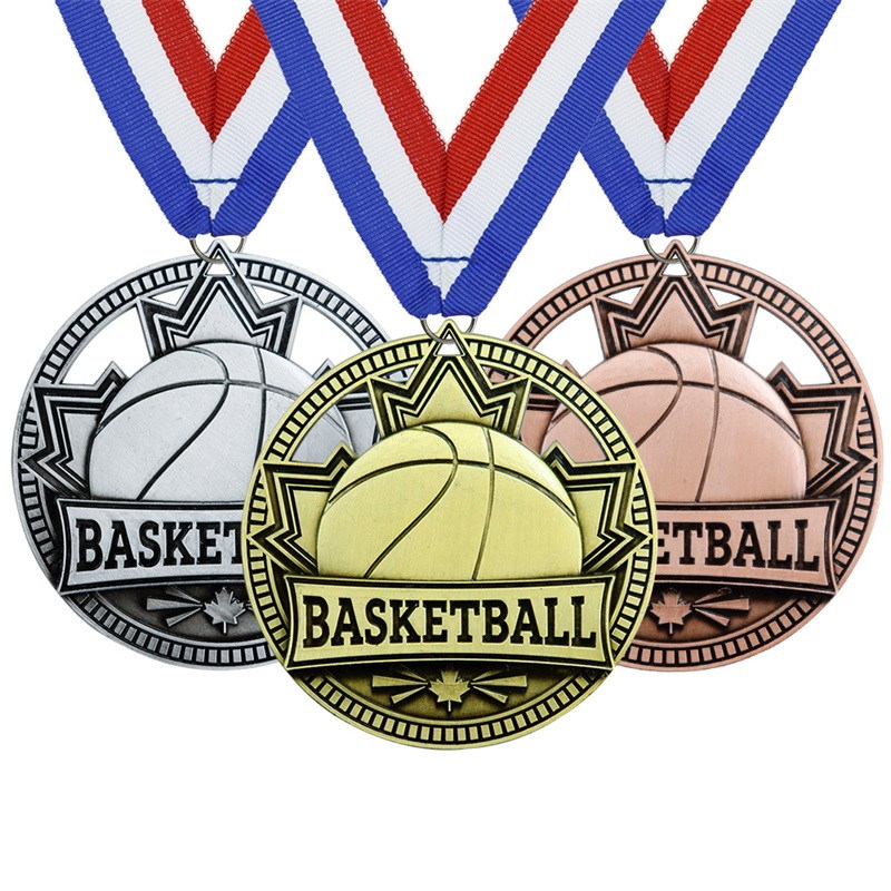Crafted in antique gold/silver/red copper, this medal features 3D basketball motifs and a blank sticker panel (for custom logos). Ideal for basketball league finals, youth team MVPs, or sportsmanship honors, it merges sport-specific charm with personalized versatility for memorable court recognition.