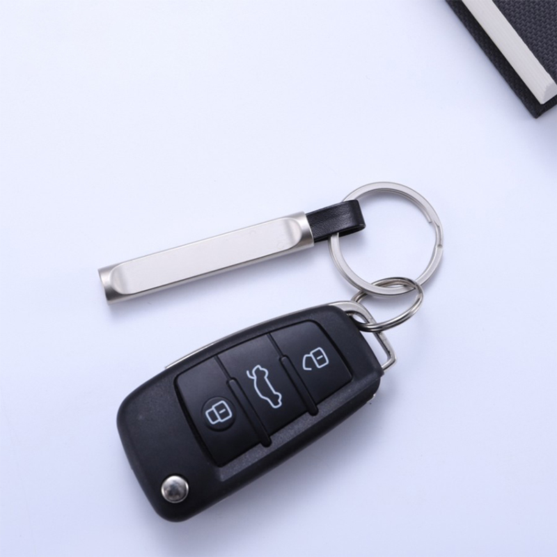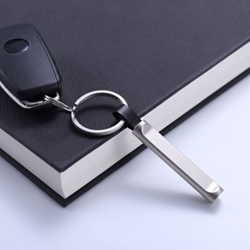 This keychain features a sleek metal bar with a leather loop and silver key ring. With a minimalist, modern design, it’s ideal for professionals or design lovers as a daily key accessory, perfect for adding understated elegance to keys or bags, and also makes a sophisticated gift.