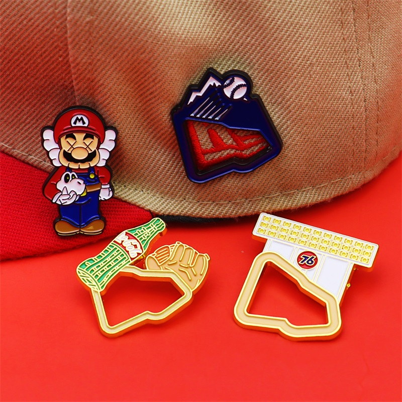 Stylish Themed AdornmentsFeaturing Mario, baseball (field/glove), bottle & 76-logo shapes with golden borders, these pins are ideal New World Cap decor—blending IP fun & trendy flair for cap/IP enthusiasts.