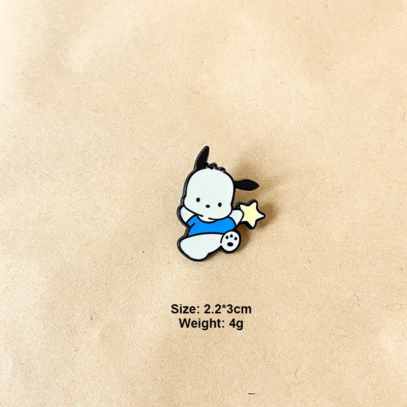 2 adorable Pochacco pins (star + sweet details) — glossy enamel with polished metal framing, durable & vibrant. Perfect for Sanrio fans to add cute flair to bags/jackets; ideal for daily wear or collectible decor.
