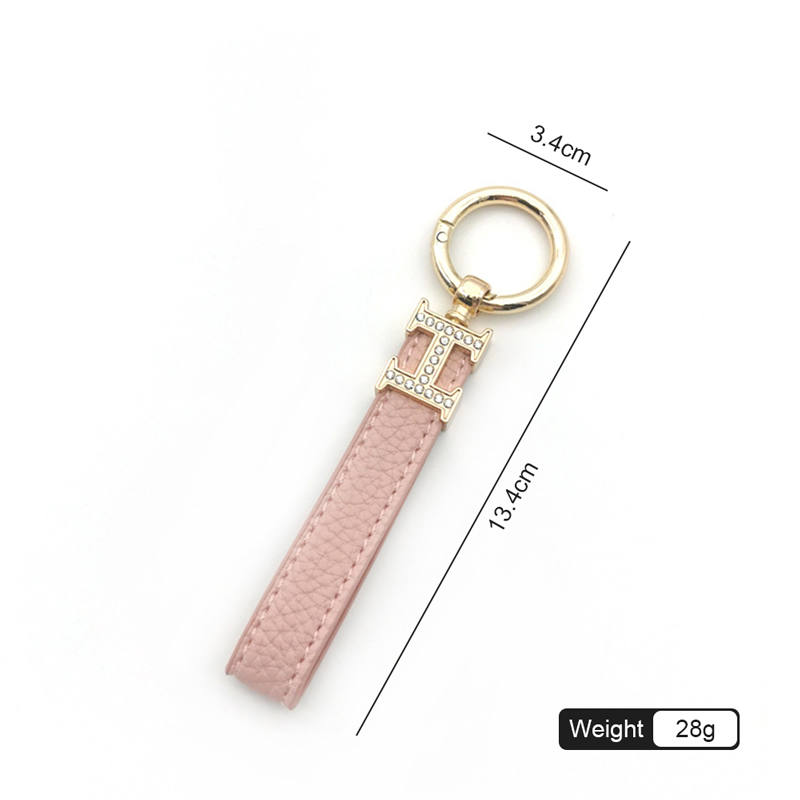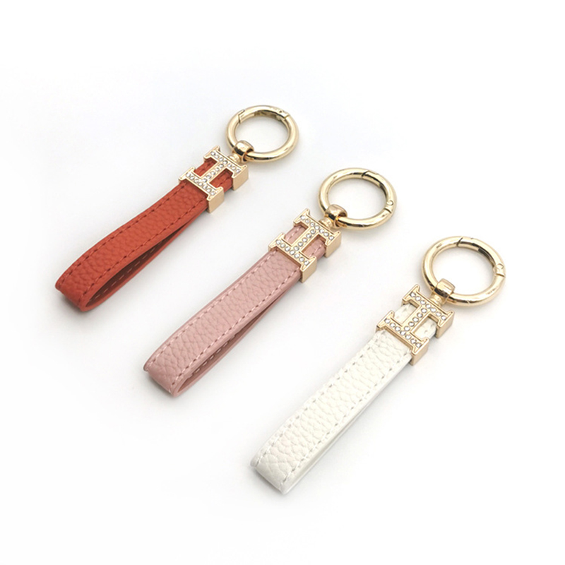 These stylish leather keychains feature a sleek strap design (available in Black, red, orange, pink, white) paired with a sparkling "H" metal charm and a durable split ring. Perfect for adding a chic touch to keys or bags.