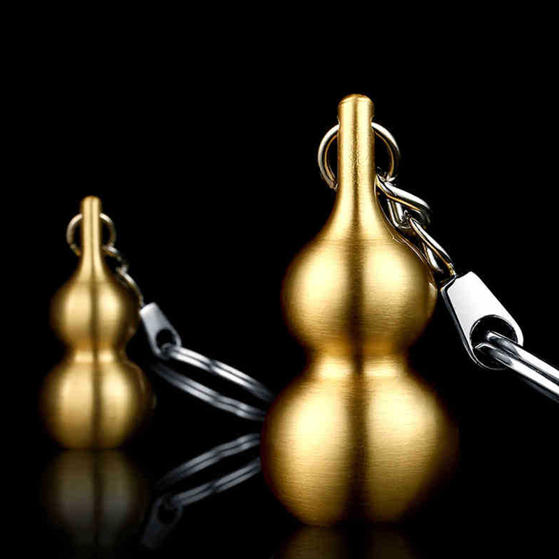 This keychain features a brass gourd (hulu) design, a symbol of good luck in Chinese culture, paired with a metal chain and ring. Its traditional yet sleek style blends cultural symbolism with practicality, appealing to those who appreciate auspicious, minimalist accessories.
