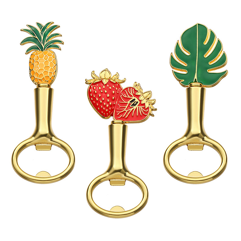 This 43-48g (8.7-9.6cm) gold opener comes in pineapple/strawberry/monstera leaf designs with vibrant enamel. It pops caps easily, making it a lively favor for summer parties, beach gatherings, or tropical-themed events.
