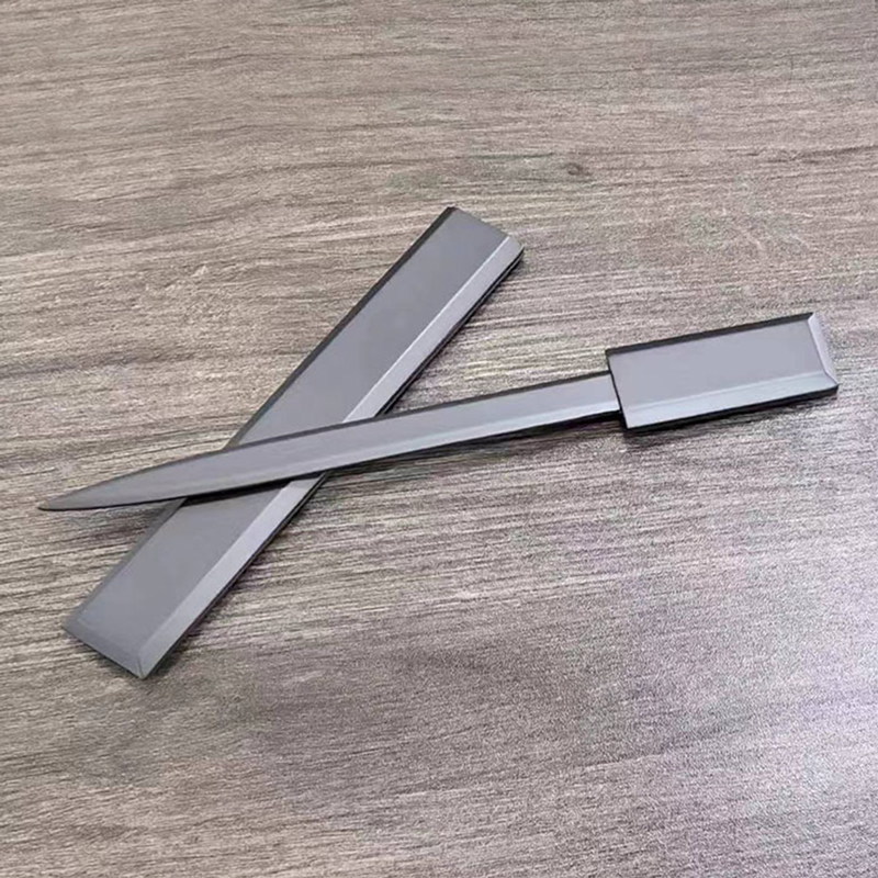 This silver letter opener boasts a sleek, modern design paired with a sharp, durable metal blade. Its protective sheath ensures safe storage, while the smooth, ergonomic handle enables effortless envelope slicing—ideal for daily desk use or gifting.