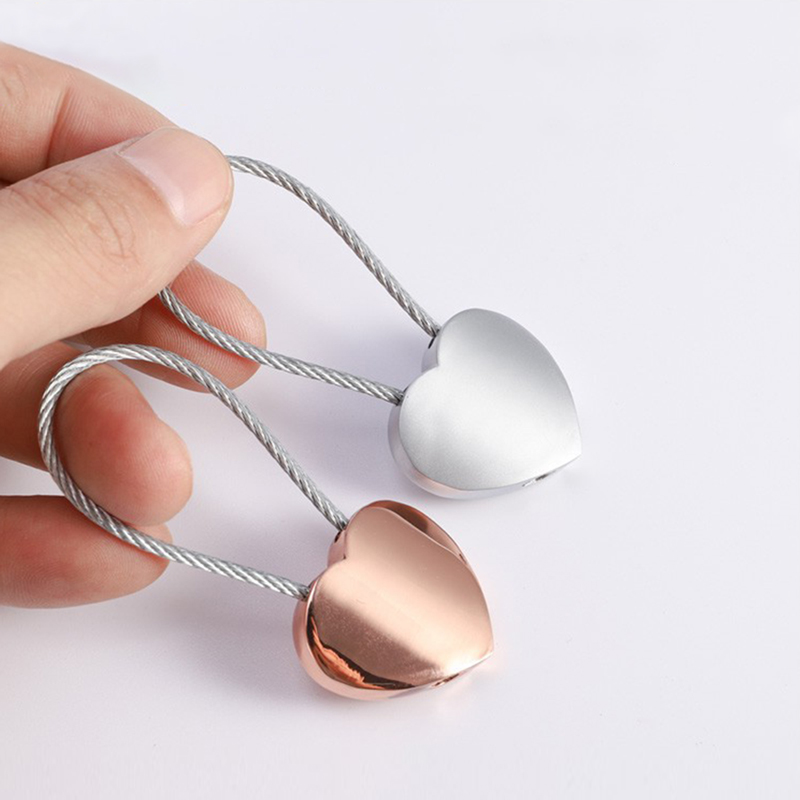 Made of metal in silver and rose gold, these keychains have heart-shaped pendants and metal cable straps. They’re perfect for couples to organize keys, adding a romantic, stylish touch, and are great for gifting or daily use in love-centric lifestyles.